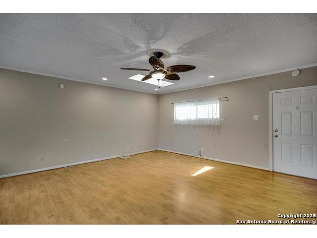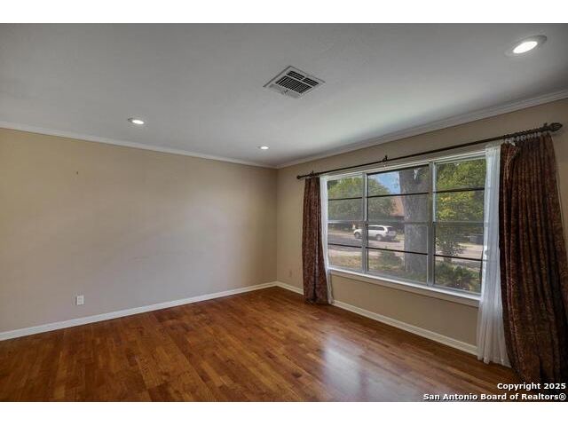 Amazing price in Harmony Hills! Beautifully maintained one-story brick home on nearly 1/3 acre. Real wood floors flow through the living and dining areas, leading to an updated kitchen with granite counters, stainless appliances, a smooth cooktop with vent hood, and a refrigerator that conveys. A cozy breakfast area opens to the family room, where French doors lead to a spacious covered patio and private backyard. A separate game room/play area provides the perfect space for movie nights or gatherings. Both baths have been updated with custom cabinets and countertops, and the primary features a large walk-in shower. This home blends traditional charm with modern updates in a fantastic central location!