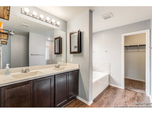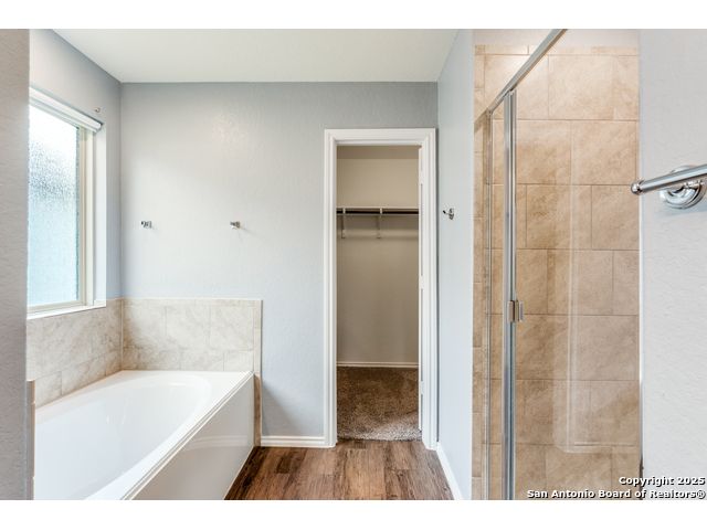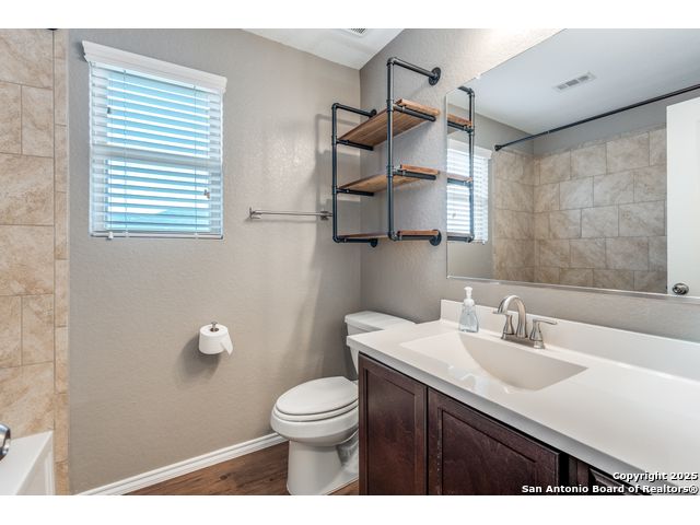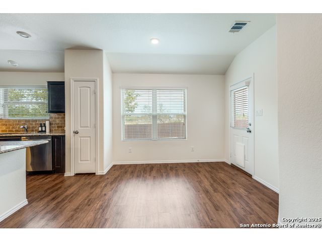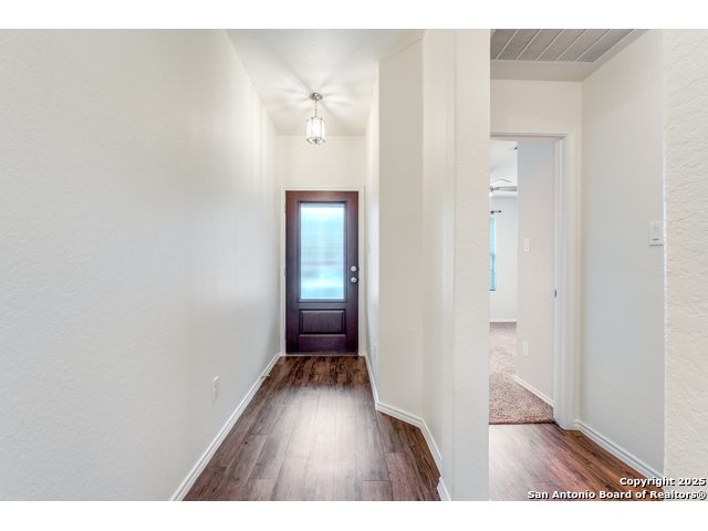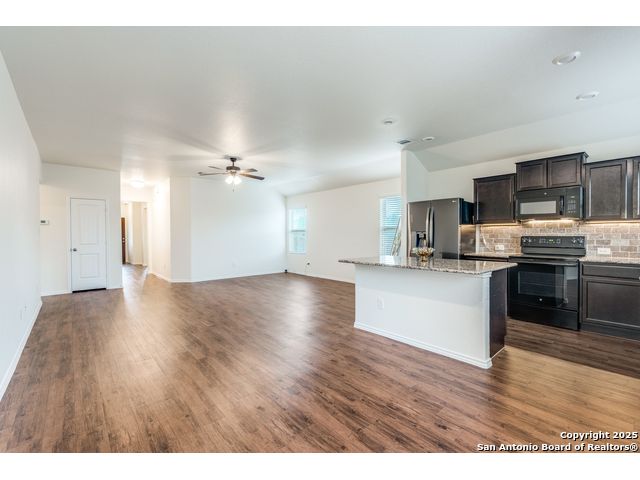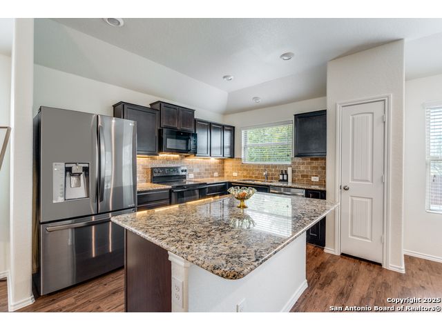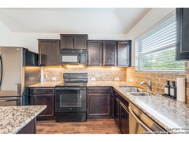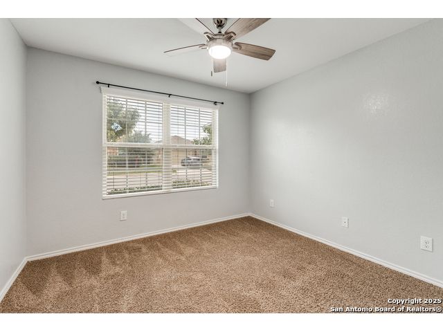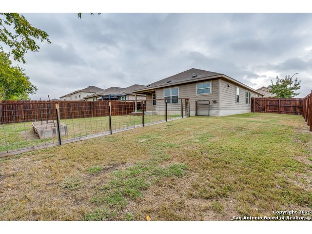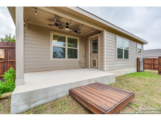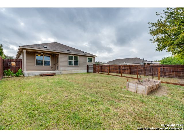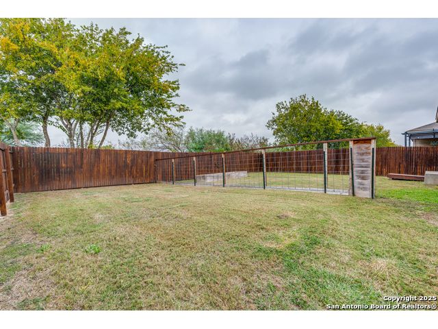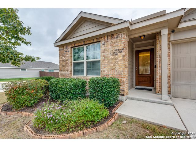 Welcome to a beautifully upgraded home offering comfort, style, and a desirable corner-lot setting in New Braunfels. With relaxing greenbelt views, this New Braunfels home offers both comfort and convenience. Inside, the open-concept design is elevated by 10-foot ceilings, upgraded fixtures, and ample natural light, giving the home a spacious and welcoming feel. The kitchen is a standout, equipped with granite counters, stainless steel appliances-including a brand-new dishwasher-custom backsplash, under-cabinet lighting, a window over the sink, and a large island perfect for casual seating. The primary suite provides a private retreat with a generous walk-in closet and an ensuite bathroom featuring a separate tub and shower. Outdoors, enjoy a fenced backyard with a covered patio and a Rainbird irrigation system that makes lawn maintenance easy. Practical upgrades include a fully insulated garage with its own A/C unit, a garage door opener, radiant barrier attic, water softener plumbing, and a newer energy-efficient 3-ton A/C system. Just minutes from Fisher Park, trails, shopping, dining, downtown attractions, and major highways-and offering a lower tax rate than nearby San Antonio-this home delivers a rare blend of value, style, and location.