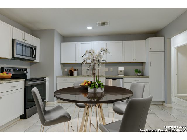 As you arrive, the home greets you with a shaded front yard and a cozy covered entry that creates a welcoming first step inside. Natural light fills the living area, highlighting the recently replaced carpet and neutral tones that make the space comfortable for relaxing or gathering with friends and family. The living area flows into a thoughtfully updated kitchen, where crisp white cabinetry, granite countertops, stainless steel appliances, and low-maintenance tile flooring offer both style and practicality. With direct access to the backyard, the layout supports easy indoor-outdoor living throughout the day. Three bedrooms provide flexibility for a variety of needs, with the option to use one as a home office if desired. Two bathrooms are conveniently located and designed with simplicity and everyday function in mind. Outside, a private, fenced backyard with mature trees offers room to create an outdoor retreat of your own. The garage and updated HVAC add to the move-in-ready convenience of the property. Located near schools, parks, and shopping-and set within a neighborhood with no HOA-this home provides comfort and value for first-time buyers, investors, or anyone seeking a thoughtful and functional place to settle in. *Please note: Some photos are virtually staged.*