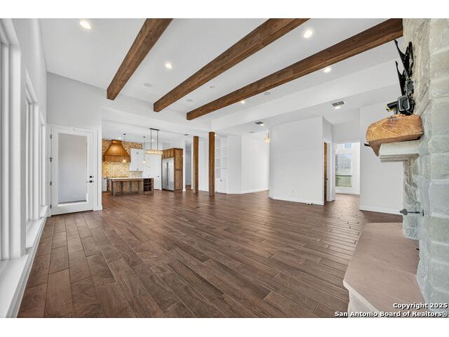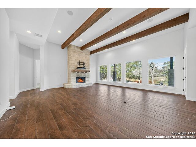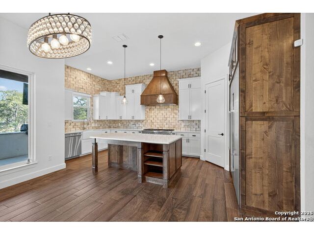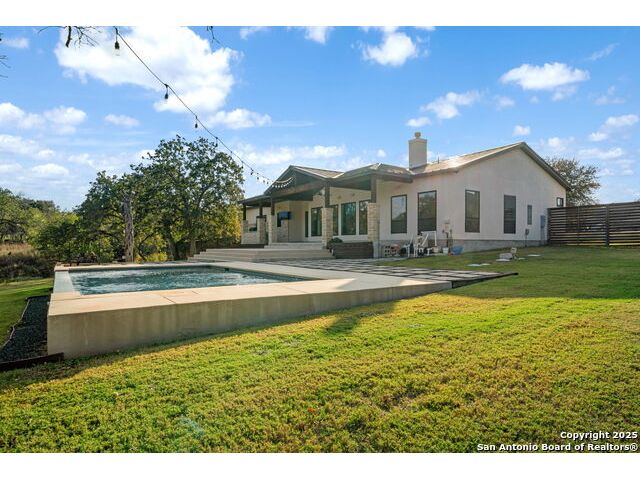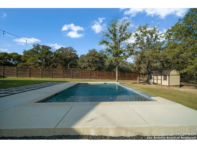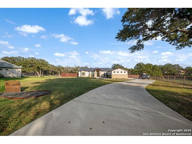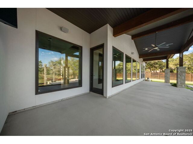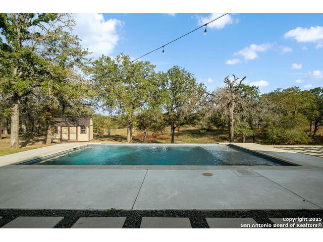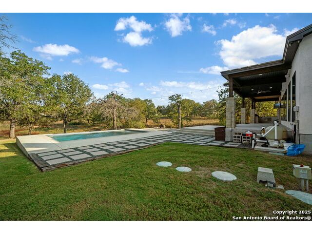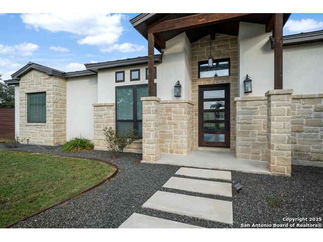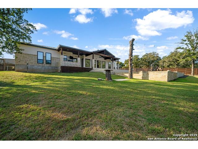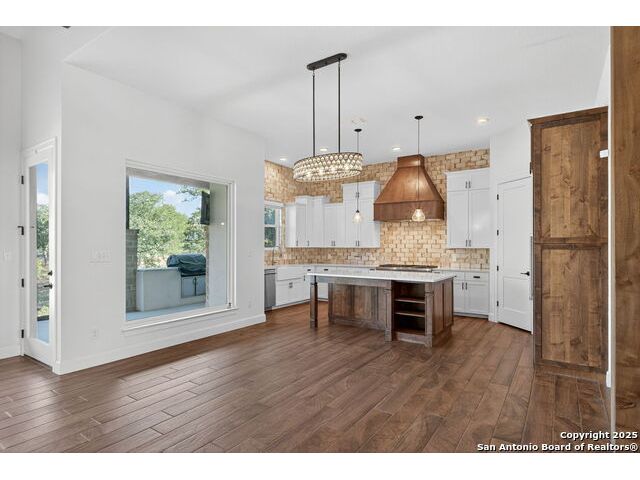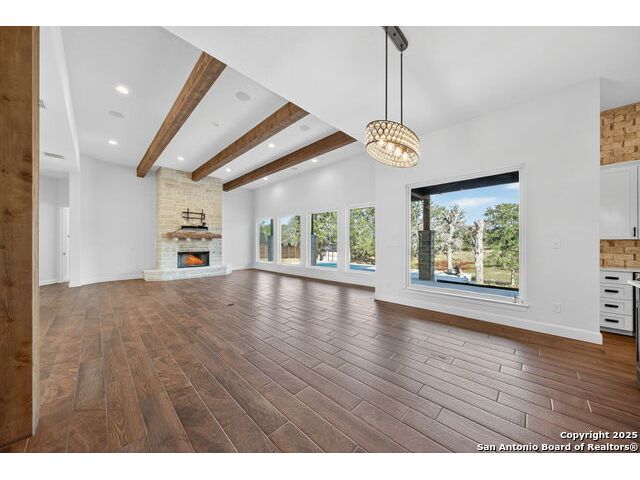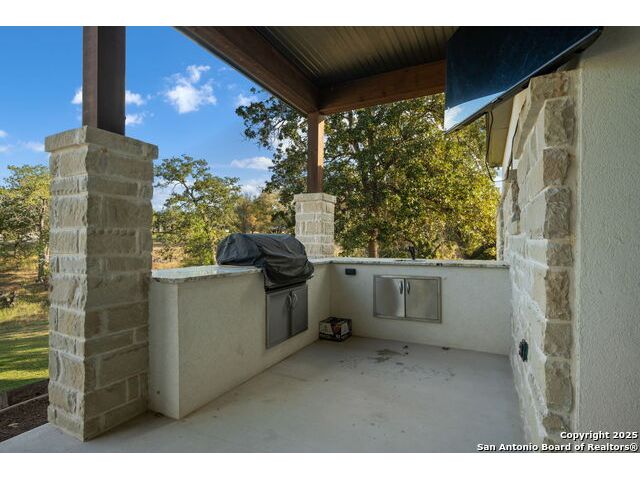 Stunning custom Texas home offering exceptional craftsmanship, smart home technology, and luxurious finishes throughout. Interior: This home boasts superior quality tile flooring, plush carpet in the primary suite, and custom solid wood cabinetry complemented by quartz countertops in every room. Enjoy energy-efficient living with double-pane windows (custom dark bronze exterior/white interior), hybrid insulation, and two tankless propane water heaters for endless hot water. The home features 11-13 ft ceilings, 9 ft solid wood doors, and Control 4 smart home integration managing multi-zone lighting, Sono's sound system, temperature control, and irrigation - all from your phone. Relax by the propane-start wood-burning fireplace or enjoy cinematic sound in any room. Additional highlights include a fully finished 2.5-car garage, walk-in closets in every bedroom, walk-in gun safe, and three statement chandeliers. Kitchen: Chef's dream kitchen with top-of-the-line Thermador appliances - stainless refrigerator/freezer, 6-burner gas cooktop with griddle, double convection ovens, microwave, dishwasher, and 62-bottle dual-temp wine fridge. Custom cabinetry with smart adjustable lighting, quartz countertops, walk-in pantry with freshwater nook, and high-end finishes make this a true centerpiece. Primary Suite: Spacious retreat with extra plush carpet and double sheetrock walls for soundproofing. Features his & her walk-in closets, dual sinks with backlit mirrors, free-standing soaking tub (jet-ready), oversized walk-in shower with rain head, and private water closet - all accented by designer tile work. Secondary Bedrooms & Office: All bedrooms include walk-in closets with custom shelving. Bedrooms 1 & 2 share a Jack & Jill bath, while Bedroom 3 enjoys a private ensuite with deep soaking tub. The 5th bedroom/office offers elegant herringbone tile and access to the secure walk-in gun safe. Exterior: Impeccable curb appeal with hand-cut natural rock and stucco, metal roof, and custom-built metal/glass entry door. The backyard oasis features a custom Gunite pool with sundeck, spacious 4-level covered patio, full outdoor kitchen with granite counters, grill, sink, TV setup, and large fan. Enjoy the multi-zone Sonos speakers, inset smart lighting, and Rain Bird smart irrigation system. RV or travel trailer parking, 8-ft privacy fencing, an extra-wide driveway with ample parking, and serene nature/water views complete this incredible outdoor space. Make this extraordinary custom-built Texas residence your next place to make Home!