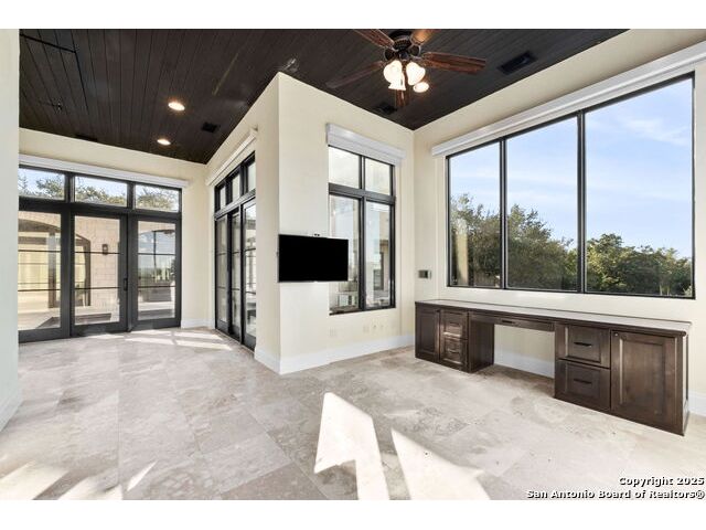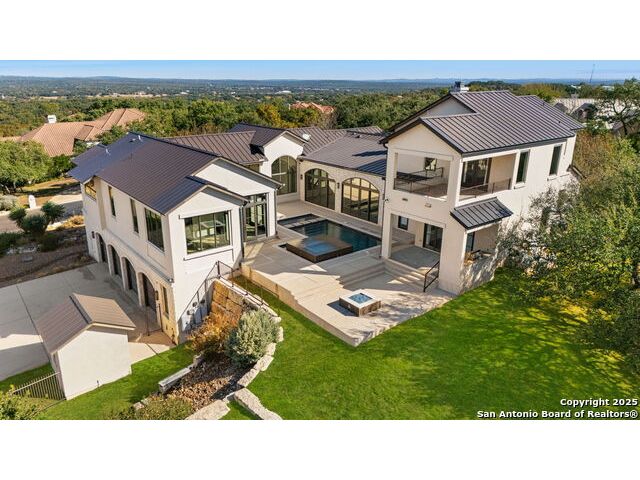 Experience elevated Hill Country living in this custom Mattern & Fitzgerald estate, offering approximately 5,715 sqft in the prestigious Windermere community of Fair Oaks Ranch. Perfectly positioned on a quiet cul-de-sac, the property showcases sweeping panoramic views and is just a quick 2-minute golf-cart ride to the Fair Oaks Ranch Country Club. This thoughtfully designed 3-bedroom, 3.5-bath residence includes a dedicated office and an impressive bar area-ideal for work, relaxation, and entertaining. The home also features a full secondary kitchen tucked within the butler's pantry, ensuring seamless hosting for any occasion. Enjoy over 1,000 sqft of enclosed outdoor living that flows effortlessly to the resort-style pool and spa, creating the ultimate year-round retreat. Located within exemplary-rated Boerne ISD, this estate blends luxury, functionality, and timeless Hill Country style. Welcome home.