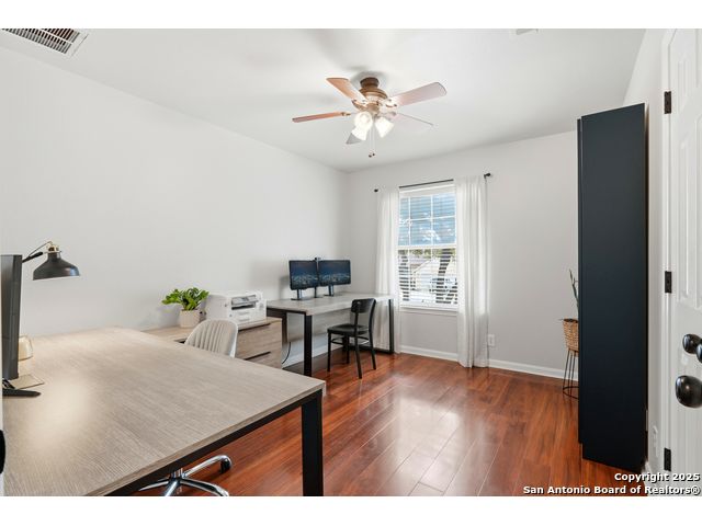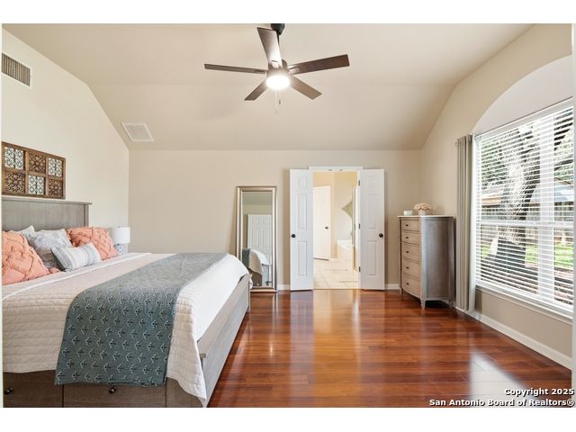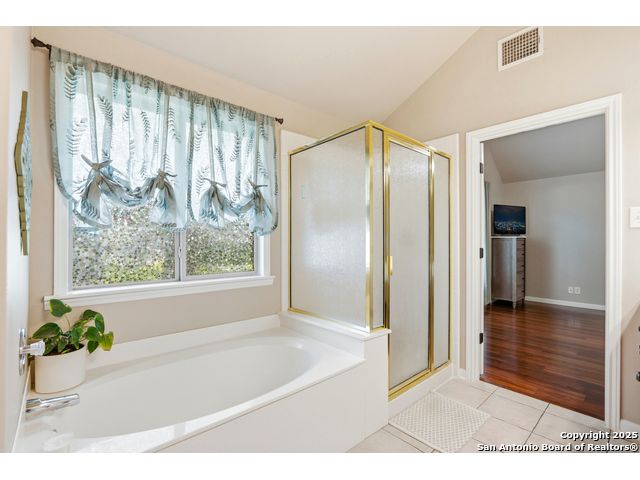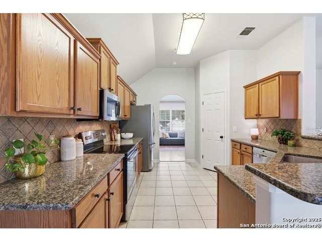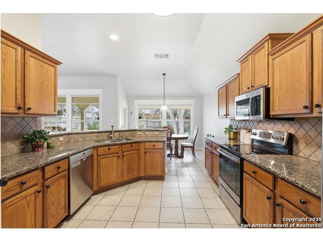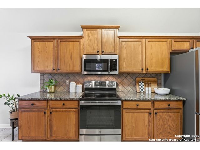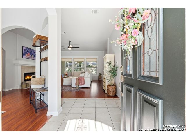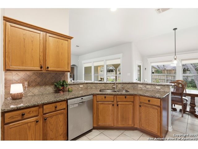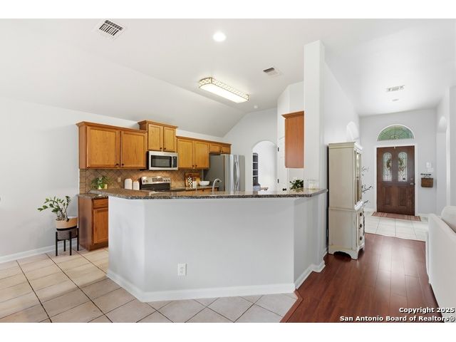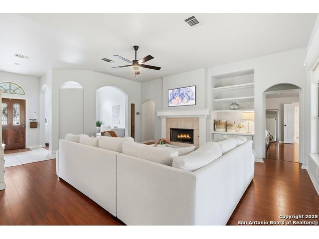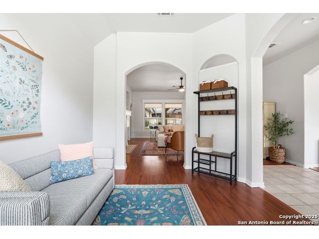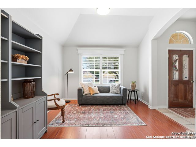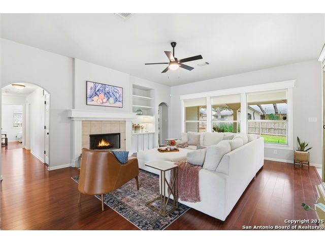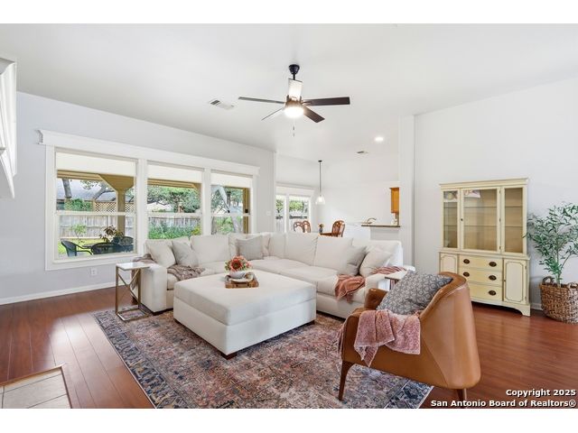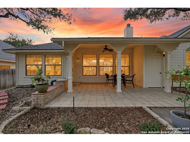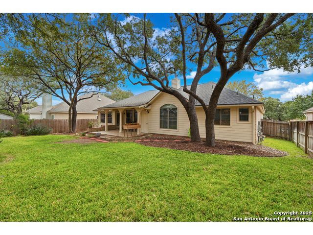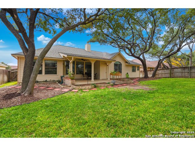 Natural light fills this beautifully maintained home, highlighting the arched doorways, custom moldings, upgraded shutters and custom window treatments. Enjoy a spacious split floor plan along with a large walk-in closet in the primary bedroom. The backyard features mature trees and a covered porch, perfect for play and entertainment. The house is ideally located close to shopping, dining and schools. A nearby walking & bike path leads to OP Schnabel Park and the SA Greenway trail system, perfect for outdoor enthusiasts. Residents of Braun Oaks enjoy a community pool swim club, with a clubhouse and tennis courts. The washer and dryer convey. The water heater and A/C were replaced in 2018, the roof and gutters were replaced in 2016 and a new reverse osmosis water system replaced in 2025.