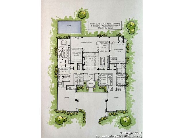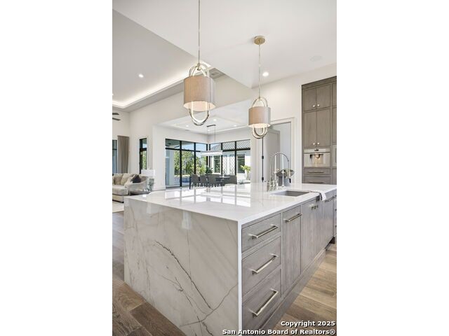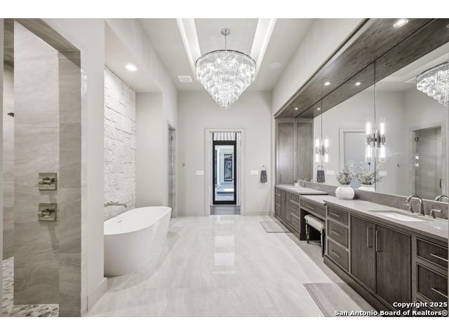 Welcome to this new one-story Modern Transitional estate which embodies show stopping detail and sophistication within The Dominion. The over 5,200 sq/ft home features unsurpassed craftsmanship and design elements that showcase the open floor plan seamlessly integrating indoor and outdoor living. The chef's kitchen features top of the line appliances, an expansive custom island that flows into the living/dining room with custom architectural ceiling detail, a dramatic fireplace and large dining room area. The interior is detailed with European oak floors, smoothly finished walls and designer light fixtures. The oversized master retreat boasts a luxurious spa-like bathroom and massive walk-in his/hers closets with extensive custom cabinetry/built-ins and with outdoor access. Impeccable craftsmanship prevails, with five spacious guest bedrooms, all with en-suite bathrooms. The home is complete with an oversized game room with a full wet bar and patio access leading out to a large covered patio with a full outdoor kitchen. The seamless indoor and outdoor integration has an outdoor fireplace, oversized patio, large yard and custom pool/spa. Four car garage offers ample parking and tons of built-in storage. This property must be experienced in person to be able to take in all it has to offer. Pictures are from previous custom built homes.