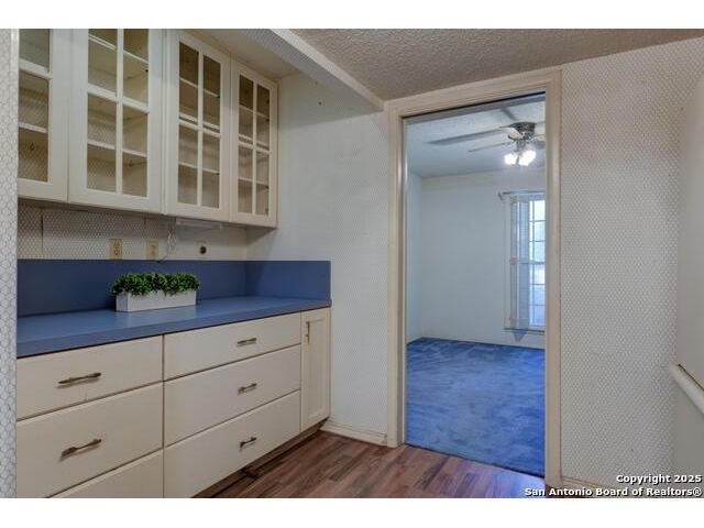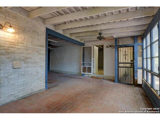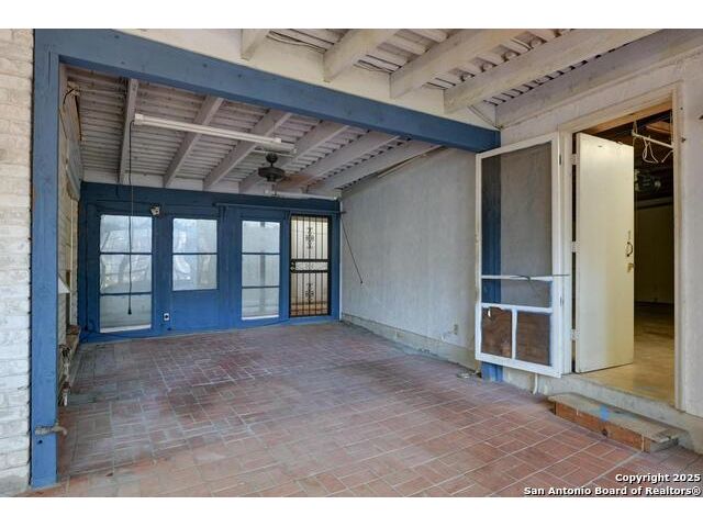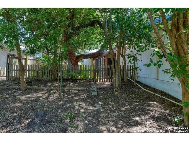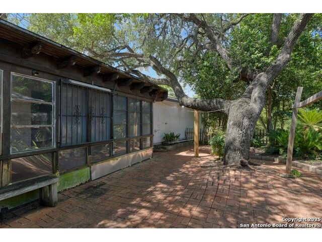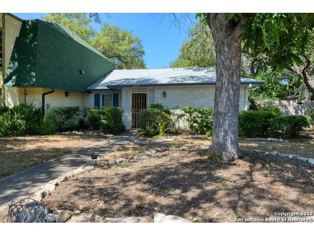 Located in the highly sough after neighborhood of Whispering Oaks, this 2 bedroom 2 bath one story townhome is full of vintage charm! Ready for a little TLC, it offers the opportunity to make it your own. With its prime location to IH-10, The Medical Center, Shopping, Phil Hardberger Park, and more, you will love the convenience. This 1665 sq. ft. floorplan has an abundance of storage space, including custom built ins. The open floorplan features a large separate dining room leading to a step down living room and corner gas fireplace. Turn the oversized enclosed patio into your very own sanctuary. There are endless possibilities with the rear entry and two side courtyard. Additional storage building is located off the 2 car detached garage. Plant your very own garden out back! With just a little updating, you will be ready to move in! Outside HVAC condenser replaced 2025
