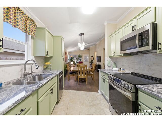 Open and airy. Single story with oversize garage. Storage unit in the back yard. Located on a cul-de-sac. This home has been well taken care of and is move in ready. Close to Bandera RD and Loop 410. Seller has had the property inspected by a licensed inspector. Your client will not be disappointed in making this their new home. Supra on the front door. Seller purchased the home in 2023 and has since made the following updates. sprinkler system front and back. all new floors to include tile and water proof laminate. master bath new walk in shower, vanity, sink with granite counter top. new water heater 2024, New kitchen appliances, counters and counter top. New ceiling fans, most all of the light fixtures are new.