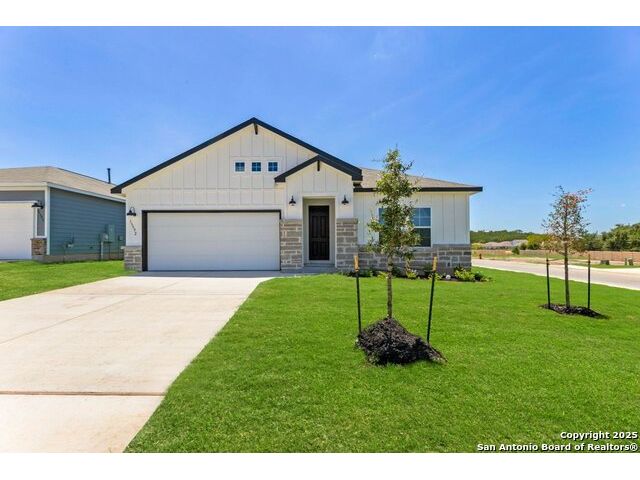 Discover the Arlington, a beautifully designed 2,045 sq ft one-story home in Hickory Ridge. This spacious plan features an inviting and bright open-concept great room, and a stylish kitchen with a large island and corner pantry. The private master suite offers dual vanities, a walk-in shower, and TWO generous closets. Three additional bedrooms and a convenient powder room provide flexible living options for guests or family. Enjoy a covered patio perfect for outdoor relaxation, plus a two-car garage and a centrally located laundry room. Thoughtful design, modern comfort, and a welcoming layout make this home ideal for everyday living and entertaining. Located just minutes from San Antonio with easy access to major highways.