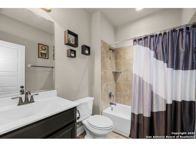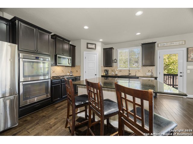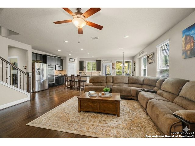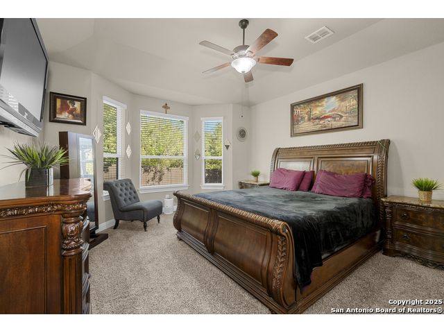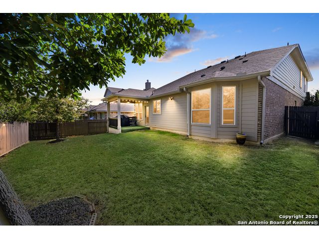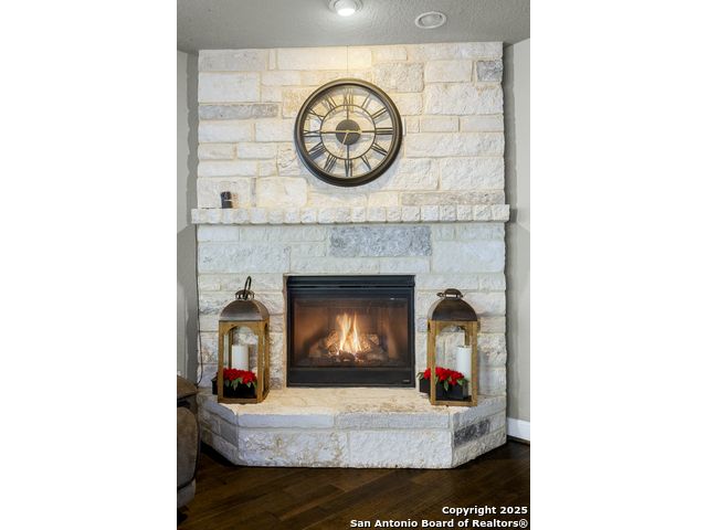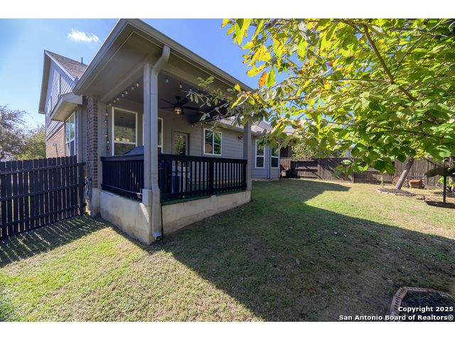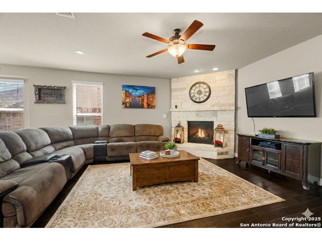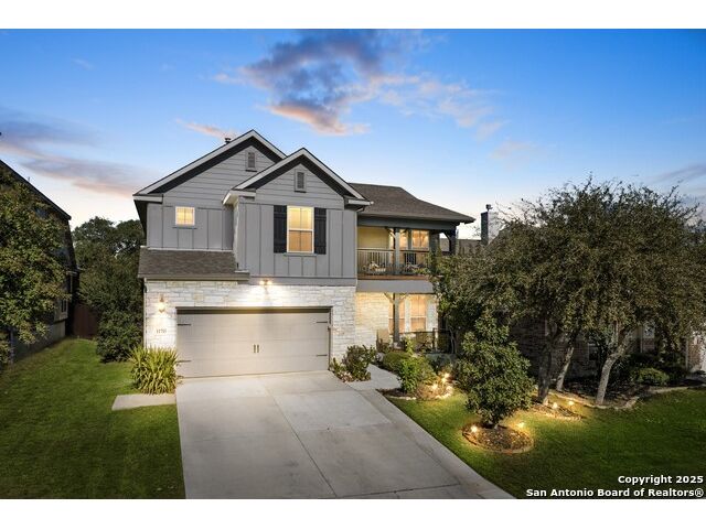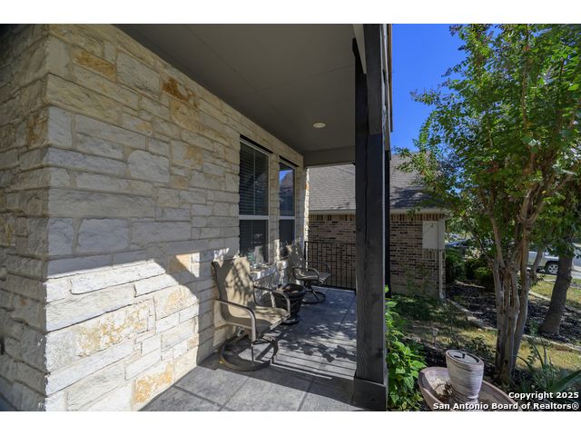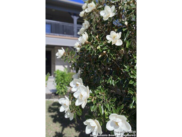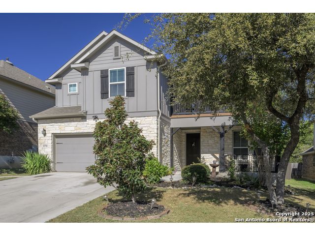 Stunning 5-bedroom, 4-bath home nestled in a quiet gated community in the heart of Far West San Antonio! This spacious property offers an exceptional layout featuring two bedrooms on the main level, including a luxurious primary suite with a charming bay window, an expansive spa-style bath with a garden tub, oversized walk-in shower, and a massive walk-in closet. The huge gourmet island kitchen impresses with extensive granite countertops, 42" cabinetry, generous storage, and abundant prep space-perfect for cooking and entertaining. The kitchen opens to the inviting family room, highlighted by a beautiful stone fireplace and hardwood floors that extend throughout the first floor. Upstairs, you'll find three large secondary bedrooms, two additional full baths, and an oversized game room with outdoor access to a private second-story balcony-ideal for relaxing and watching the sunset. A versatile flex room can be used as a media room, home office, or fitness space. Step outside to a peaceful backyard featuring a beautiful mature Magnolia tree, a covered patio, full sprinkler system, whole-house water filtration/softener, and the added privacy of no rear neighbors. Taft High School sits conveniently behind the home with a buffer for privacy. This small, well-maintained gated community offers fantastic amenities, including a swimming pool, basketball court, clubhouse, BBQ/picnic area, playground, park, tennis court, and exercise room. Perfectly located near Loop 1604-with quick access yet no heavy traffic-this home offers both convenience and tranquility.