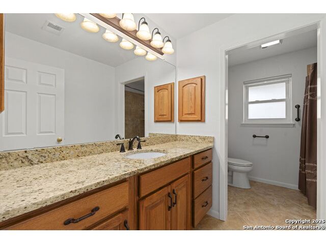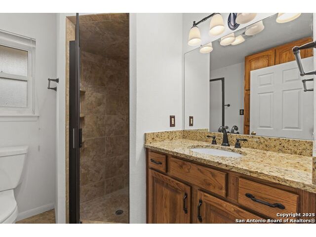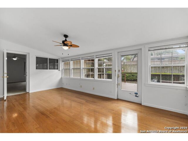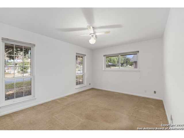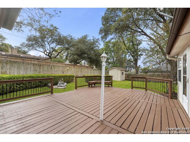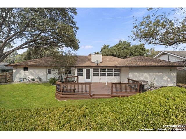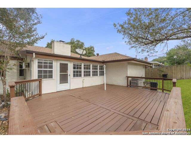 Beautiful single-story mid-century home in the incorporated City of Windcrest, just minutes from Randolph AFB. Windcrest offers its own government and services, including City Hall, Post Office, Fire Department, Police Department, weekly trash service, plus highly regarded Windcrest Elementary and the beautiful Takas Park. Takas Park is roughly 100 yards from the home, with a main walking entrance just down the street, and features a scenic walking trail, fresh-water pond, baseball fields, tennis courts, playground, and shaded picnic areas. Inside, you'll find 4 bedrooms and 3 full baths, including en-suite bathrooms in both the primary and fourth bedrooms-ideal for guests or multi-generational living-along with fresh paint throughout. A spacious enclosed sunporch adds approximately 300 additional square feet of usable space (not included in listed square footage). Enjoy a functional single-story layout, great natural light, and a backyard deck perfect for relaxing or entertaining. Conveniently located about 7 miles from San Antonio International Airport and Downtown San Antonio, with easy access to I-35 just a mile away. No HOA dues-an exceptional Windcrest lifestyle opportunity.