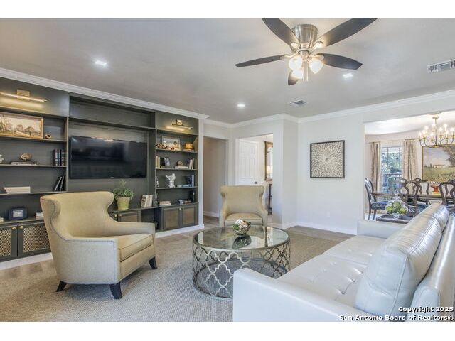 Welcome to Colonial Hills living-quiet streets, large lots, and friendly neighbors surrounded by nature. This updated home sits on a rare 15,000+ sq ft lot, offering privacy, space, and room to grow. Thoughtful upgrades were completed throughout the home, including completely remodeled bathrooms with beautiful oversized tiled showers, and a gorgeous kitchen featuring shaker cabinets, black quartz countertops, and a brand-new gas range and specialty lighting. Work from home? The office with French doors provides the perfect setting. Relax in the living room with its custom built-in entertainment and shelving, or take advantage of the fresh paint, modern lighting, and new ceiling fans throughout. The large attached garage makes storage and parking easy. And the expansive backyard offers unlimited potential-add a pool, build a casita or simply enjoy the open space while deer and wildlife pass through, a signature part of the neighborhood's charm. Close to shopping, restaurants, and major roads-but tucked away from the busyness-this home brings together convenience, comfort, and peaceful surroundings.