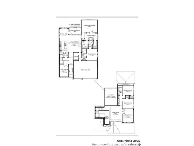 Welcoming front porch. Home office with French doors at entry. Spacious family room with a cast stone fireplace and wall of windows. Open kitchen offers a corner pantry, a 5-burner gas cooktop, and an island with built-in seating space. Dining area with gorgeous view of the backyard. Secluded primary suite with a wall of windows. Primary bath offers dual vanities, freestanding tub, separate glass enclosed shower and two walk-in closets. Guest suite on first floor with a walk-in closet. Second floor boasts a game room, media room with French door entry, linen closet, full bathroom with dual sinks and secondary bedrooms with walk-in closets. Extended covered backyard patio. Utility room and mud room just off the three-car garage.