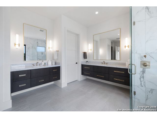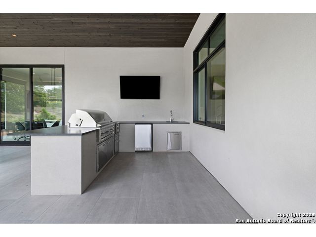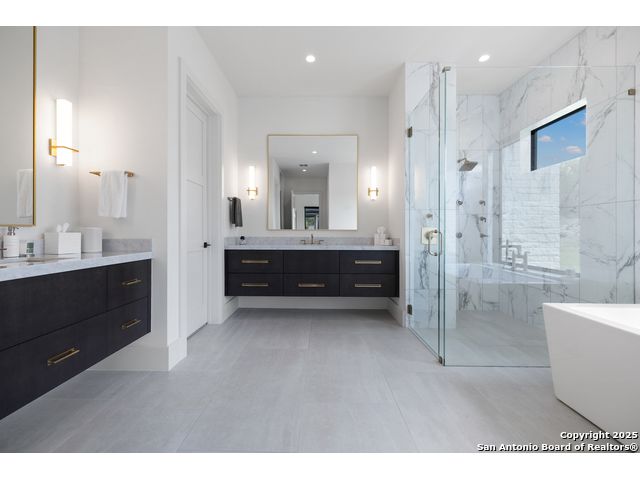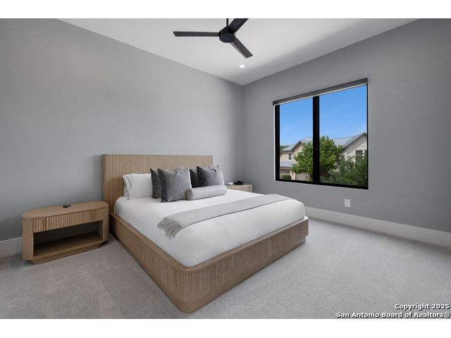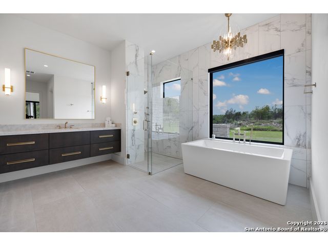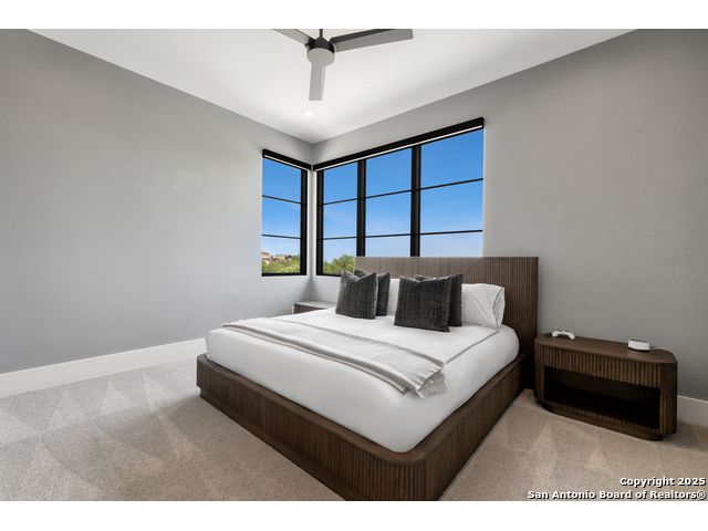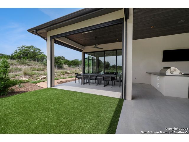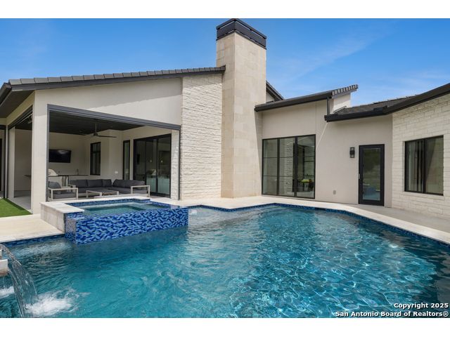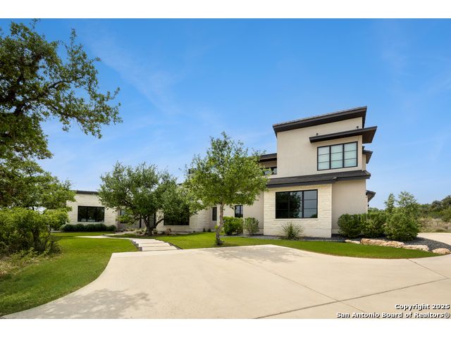 Nestled in the prestigious Clubs Village at Cordillera Ranch, this custom Garner Home perfectly blends modern Hill Country style with everyday livability. Every detail was thoughtfully chosen to create a balance of comfort, elegance, and clean architectural design. The dramatic glass entry doors immediately frame peaceful views of the outdoor oasis, complete with a resort-style pool and spa. Inside, soaring ceilings, abundant natural light, and a soft neutral palette set a calm, inviting tone throughout the home. The chef's kitchen is both stunning and highly functional, featuring quartzite countertops, a waterfall island, and a full suite of Thermador appliances. It opens seamlessly to the main living area, where a floor-to-ceiling stone fireplace becomes the centerpiece of the room. The primary suite feels like a private retreat, offering its own sitting area and a spa-inspired bath with dual vanities, a freestanding soaking tub, an oversized walk-in shower, and separate dressing areas. Upstairs, two additional bedrooms share a cozy private lounge and a covered balcony with beautiful long-range views. Two main-level guest suites provide added comfort and privacy for visitors. For entertaining, the game room is ideal, complete with a full bar and sliding glass doors that open directly to the outdoor living area. A separate fitness room offers flexibility for a fifth bedroom, home office, or creative space. Outside, the home continues to shine with a summer kitchen, multiple lounging areas, and the gorgeous pool and spa. THIS PROPERTY ALSO INCLUDES A MASTER FULL GOLF RIGHT MEMBERSHIP TO THE CLUBS OF CORDILLERA RANCH!! With its privacy, thoughtful amenities, and elevated lifestyle, this home truly embodies luxury living in one of the Hill Country's most desirable communities.
