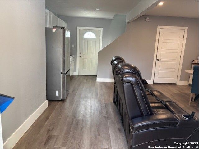 Beautifully renovated and endlessly flexible, this property offers two self-contained living spaces on a single 0.24-acre lot. Each side has its own kitchen, living area, and bedrooms, making it ideal for multi-generational living, two families, or a smart investment. Side A: A single-story, 3 bedrooms, 1 full bath home with a bright kitchen, dining area, and living room. A barn door separates the bedroom zone for added privacy and versatility. Side B: A stylish two-story home featuring 1 bedroom, 1 full bath, a walk-in closet, and a balcony on the second floor. The first floor hosts the kitchen, laundry, and living area. Separate, fully functional living spaces perfect for privacy, rental income, in-law suite, or a combined family home. 0.24-acre lot with plenty of outdoor space for gardens, play, or future additions. Large, efficient solar panels to help lower electric bills and promote a greener lifestyle. Modern renovations throughout, with quality finishes and easy-care flooring. Flexible layout ready for two households, a duplex, or single-family living with generous guest or work-from-home options. Potential for excellent rental income or multi-generational living without sacrificing privacy. Renewable energy adds value and reduces monthly operating costs. Private, self-contained units on one lot, offering endless configuration possibilities. Perfect for sustainable living in sunny San Antonio, this property combines modern comfort with thoughtful versatility. Schedule a private tour today to see how two homes in one can work for you.