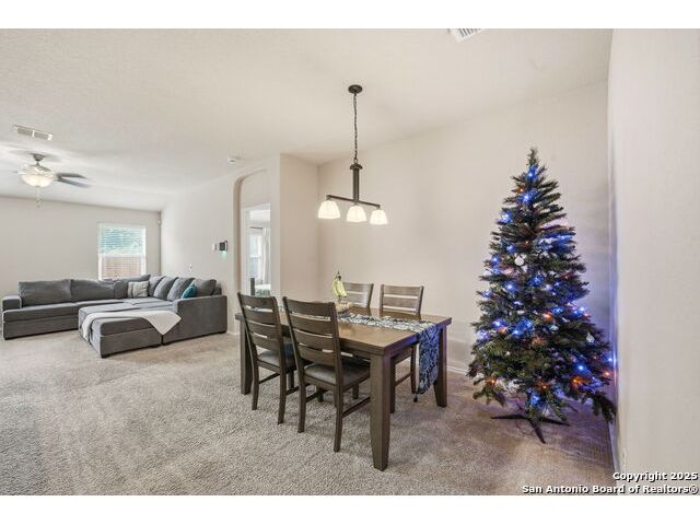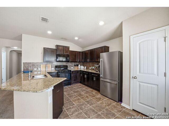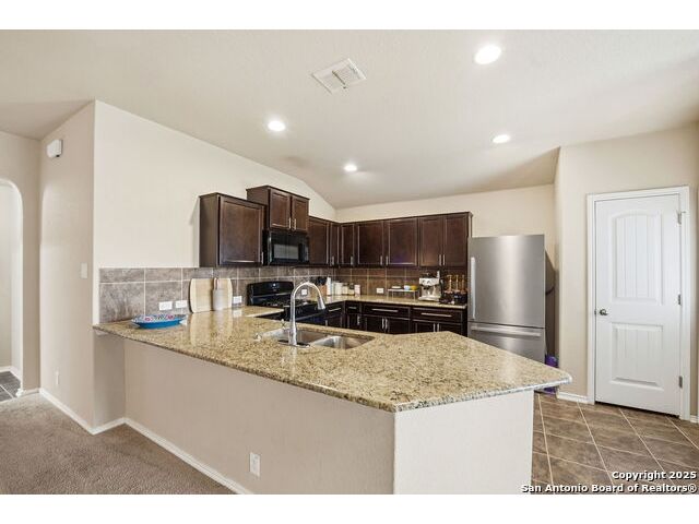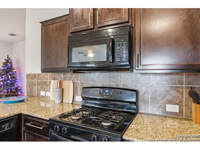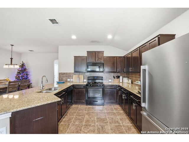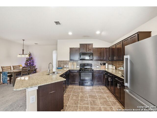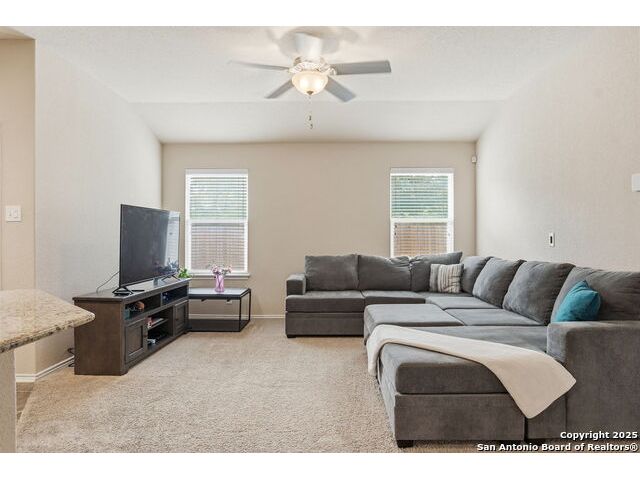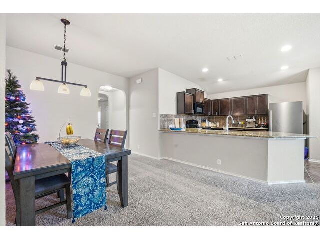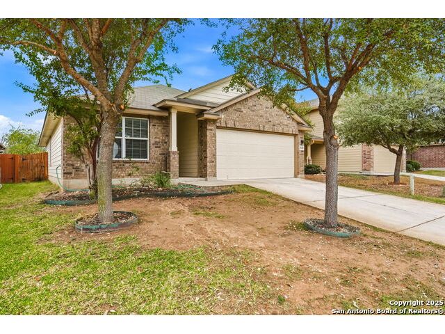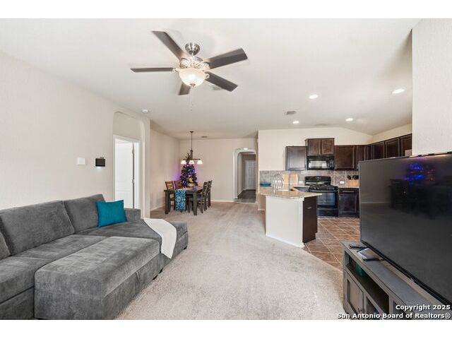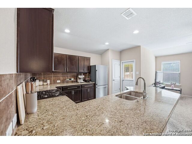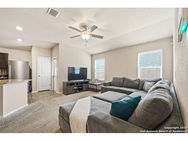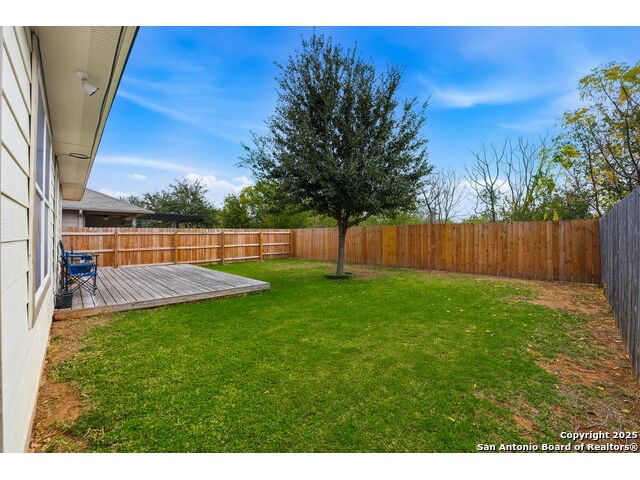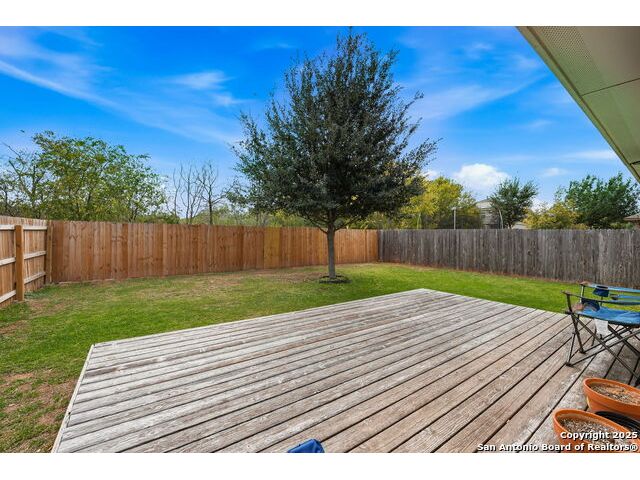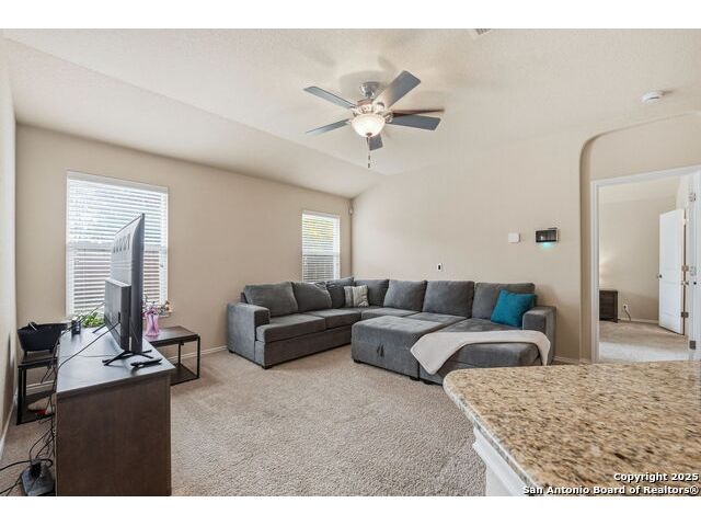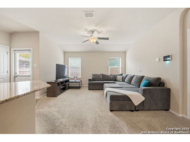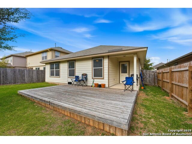 Set on a greenbelt lot, this one-story home in Wildhorse at Tausch Farms offers an inviting layout enhanced by thoughtful upgrades. An FHA assumable loan at a competitive 3.125% is available for qualified buyers. Recent improvements include a newer fence, a newer security system with exterior cameras, newer window motion detectors, and a high-quality Kinetico water softener. Washer, dryer, and fridge will convey with the property. Arched entryways and recessed lighting create a warm flow throughout the main living area. The kitchen features granite countertops, dark cabinetry, and a breakfast bar that adds both style and versatility. The backyard serves as a private outdoor escape with a covered patio and a spacious wooden deck perfect for relaxing or entertaining. Its location provides quick access to Loop 1604 and places the home within the well-regarded Northside Independent School District. Shopping, dining, everyday essentials, and the nearby Helotes area are all close by, along with popular destinations such as Alamo Ranch, La Cantera, SeaWorld, and Fiesta Texas.