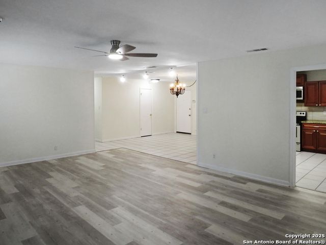 Welcome to 13610 Earlywood St, an updated 4-bedroom, 2-bath pool home in the well-located Woodstone community of Northeast San Antonio. This single-story home features a comfortable layout with all bedrooms arranged along the same hallway, offering easy access and a natural flow throughout the home. Recent 2025 updates include new vinyl plank flooring, fresh interior/exterior paint, granite countertops, travertine stone accents, new cabinets, new windows and all-new kitchen appliances. Important major improvements include a 2019 HVAC replacement, 2020 pool replaster and deck, 2022 bathroom remodel, and additional siding, flooring, and garage updates completed in 2025 The large living room opens to a bright dining area and renovated kitchen, creating an inviting space for everyday living and entertaining. Step into the backyard and enjoy your own private retreat-an in-ground pool, updated decking, and plenty of patio space to extend your pool season nearly year-round. With no carpet, level flooring, and a move-in-ready finish, this home combines comfort, convenience, and a lifestyle-friendly backyard. A great opportunity to own a refreshed pool home in Woodstone, close to schools, shopping, and major commuter routes.