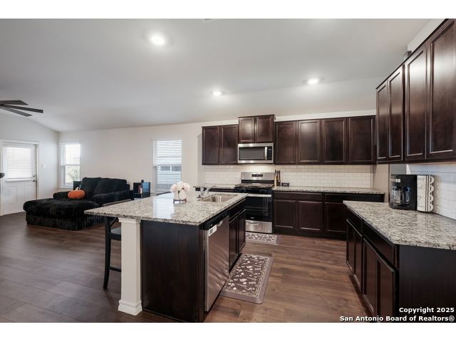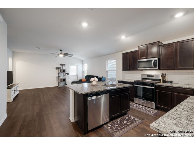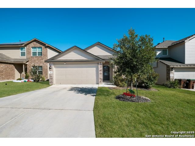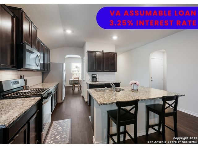 Unbeatable Opportunity: VA Loan Assumable at 4.99! Stop paying today's high interest rates! This modern, single-story home in Redbird Ranch offers an exceptional financial advantage: a 4.99 VA loan that is assumable by a qualified veteran buyer (subject to VA and lender requirements). Secure an unprecedented low payment and save thousands over the life of the loan. Welcome home to a bright, open-concept design featuring soaring high ceilings and an intelligent layout built for modern living. The gourmet kitchen is the heart of the home, boasting rich dark brown cabinetry, a massive eat-in island, matching appliances, and seamless flow into the main living area. Retreat to the spacious primary bedroom, featuring an oversized walk-in closet and a luxurious primary bath complete with a double vanity, separate shower, and a soaking tub. Includes a separate dining area with an archway entry, utility room inside, and durable flooring with low-maintenance ceramic tile and soft carpeting. Entertain effortlessly on the covered back patio overlooking a large, private, fenced backyard-perfect for pets, play, and Texas BBQs. The home also features a full sprinkler system and mature trees. Take advantage of the resort-style community amenities, including a pool, clubhouse, fitness center, tennis and sports courts, playground, and scenic trails.Located in the desirable Redbird Ranch subdivision with quick access to Loop 1604, extensive shopping, dining, and military bases.
