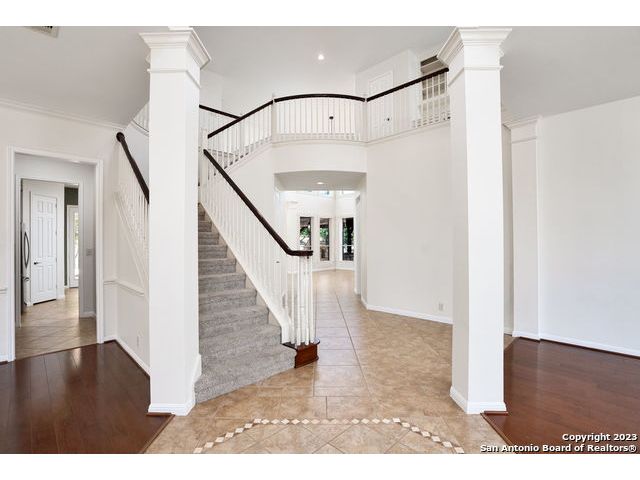Situated on a .60-acre corner lot in a gated community, 27611 Autumn Terrace offers over 4,300 sq. ft. of sophisticated living space. This 4-bedroom, 3.5-bath, two-story home showcases a gourmet kitchen, a living room with soaring ceilings and fireplace, and expansive windows that fill the home with natural light. Designed for both comfort and entertaining, the property features a spacious patio and deck that extend gatherings outdoors. With easy access to IH-10, you will enjoy seamless connectivity to Downtown Boerne, The Rim, The Shops at La Cantera, and San Antonio's top medical and business centers. Experience the perfect balance of privacy, convenience, and refined living in this exceptional property.