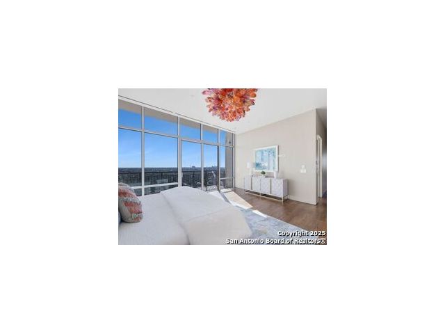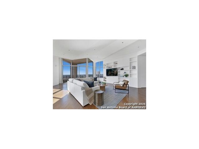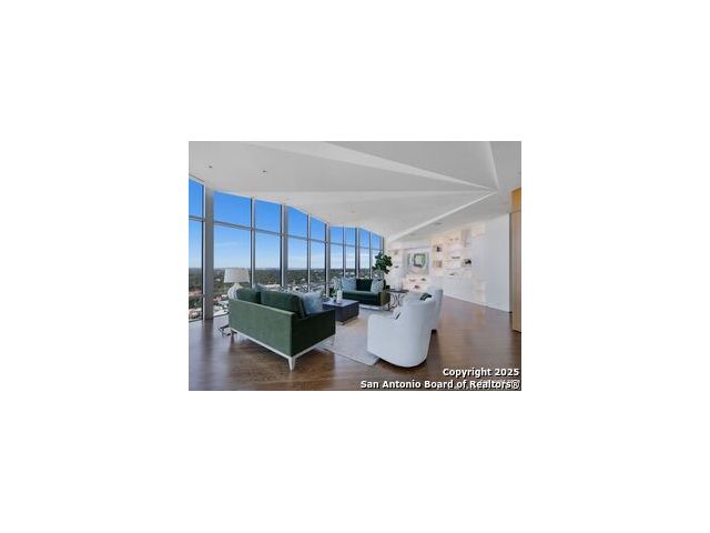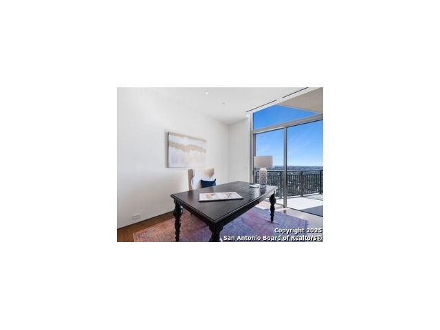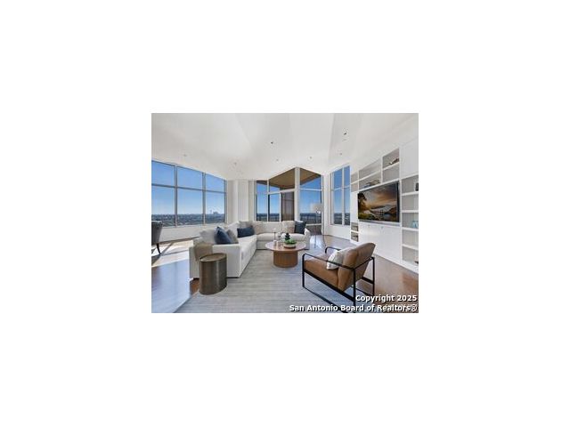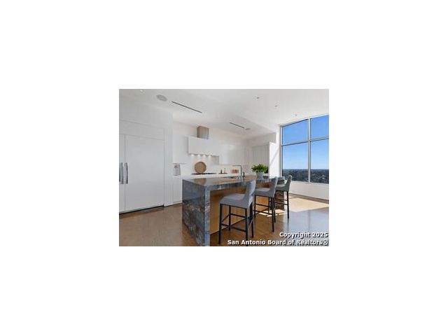 Exceptional high-rise living on one of the most desired floors at The Broadway. This refined residence captures sweeping skyline and Hill Country views through walls of floor-to-ceiling glass, creating a light-filled backdrop throughout the home. A private elevator vestibule leads into a generous open-concept layout designed for effortless daily living and sophisticated entertaining. The main living area offers multiple seating arrangements with seamless access to an outdoor terrace that frames the expansive vistas. The kitchen is finished with elevated custom cabinetry, premium stone surfaces, and a full Miele appliance suite including gas cooking. A large island anchors the space, offering both function and presence for culinary preparation or casual dining. The primary suite is positioned to maximize privacy and views, complete with its own terrace access, a spa-caliber bath with dual vanities, a walk-in shower, and a custom-fitted closet. Two additional guest suites each feature en-suite baths and generous storage, providing flexibility for visitors or extended-stay living. Additional highlights include a dedicated study/flex space, well-appointed utility room, and meticulously curated finishes throughout the home. Residents of The Broadway enjoy a premier lock-and-leave lifestyle with 24-hour valet and concierge services, state-of-the-art fitness center, resort-style pool, and unmatched security. All within minutes of the city's best dining, retail, cultural attractions, and outdoor amenities. A rare opportunity to live in one of San Antonio's most distinguished and sought-after luxury high-rise communities.
