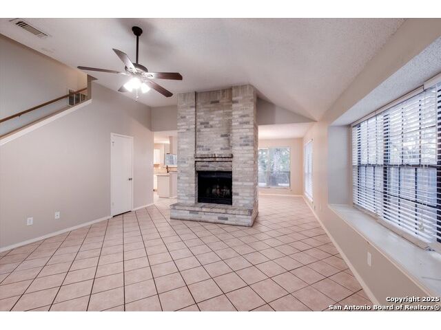 Discover your lakeside retreat in the peaceful Towne Lake community. This beautiful home backs up to gorgeous water views of the 3 acre lake and features bright, open living spaces with an effortless entertainer's flow on the first floor. The large eat-in kitchen opens to the dining area, and the living room includes a cozy fireplace, making hosting all the more enjoyable. Upstairs, you'll find the expansive primary bedroom with a generous ensuite bath featuring a double vanity, glass-enclosed shower, and soaking tub. Two additional bedrooms and a full bath offer flexibility for family, guests, or a private home office. Enjoy serene lake living just minutes from Wurzbach Parkway and less than 15 minutes from the San Antonio International Airport.