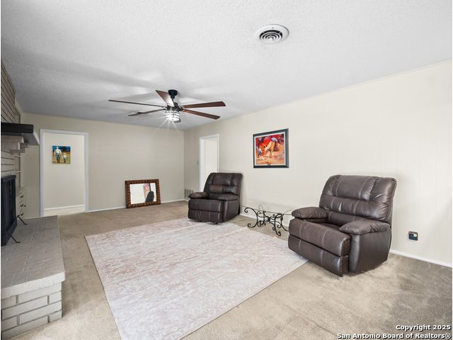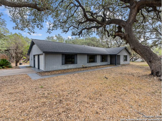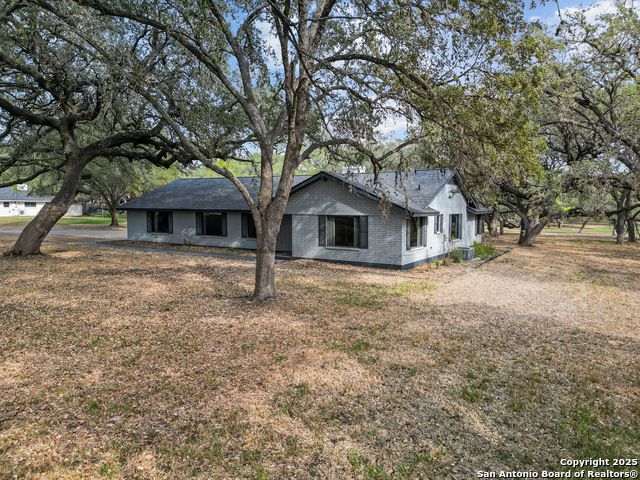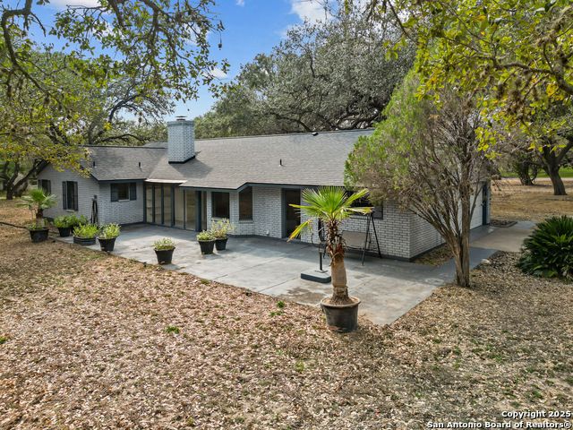 Nestled on 4.005 oak-covered acres inside Pleasanton, this one-story brick home offers space, privacy, and a rare in-town setting surrounded by mature trees. A private well dedicated to yard irrigation makes it easy to maintain the property's expansive outdoor areas. The home features two living areas, a separate dining room, a fireplace in the main living room, and a sunroom overlooking the back acreage. The kitchen opens to the family room and provides generous counter space, storage, and a breakfast area with peaceful views of the trees. With three bedrooms, two baths, and ceiling fans throughout, there's plenty of room to spread out. Exterior features include a two-car garage and a two-car carport with an attached workshop/storage area. A new roof was installed in November 2025. If you're looking for acreage, shade, and space to create your own vision-right in Pleasanton-this property is a standout.