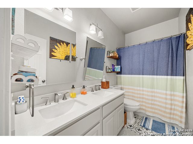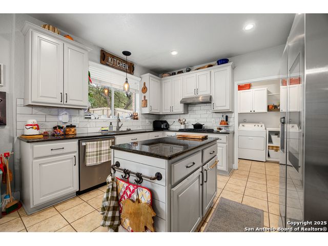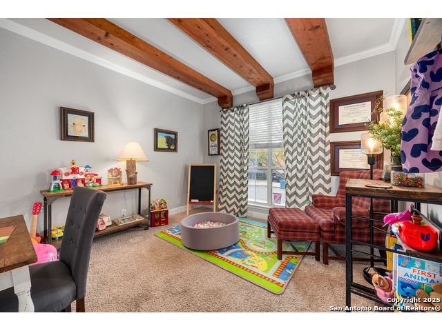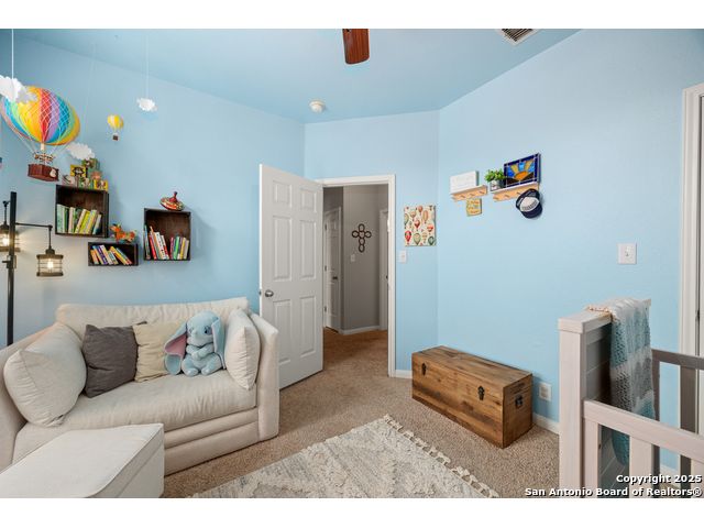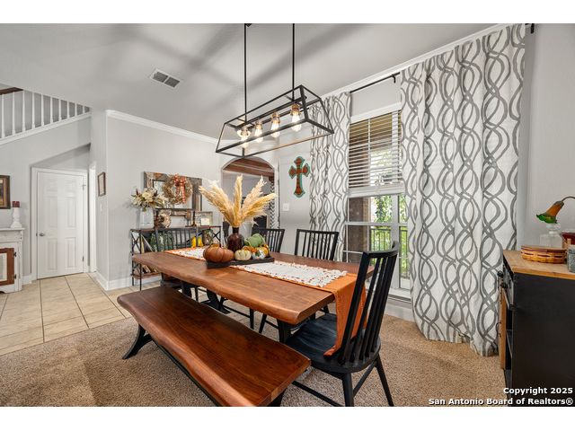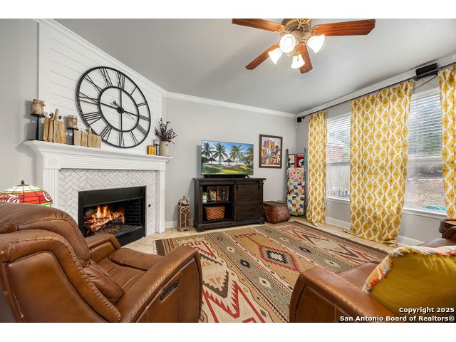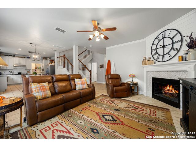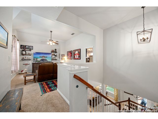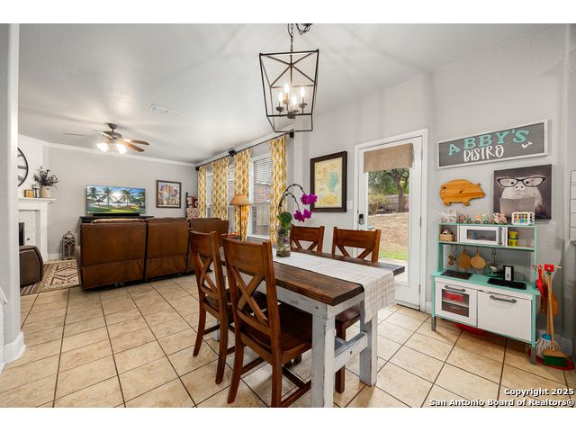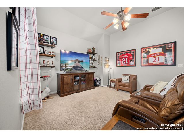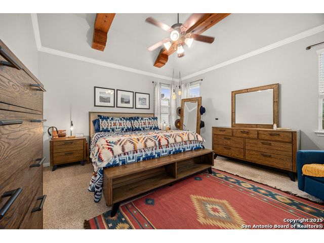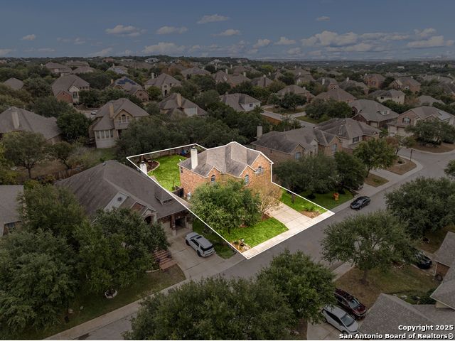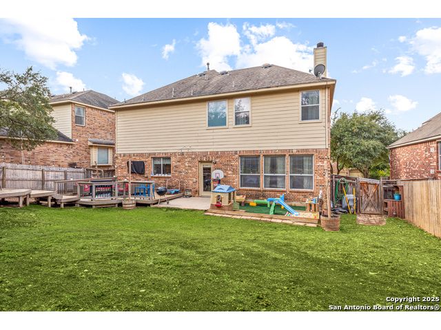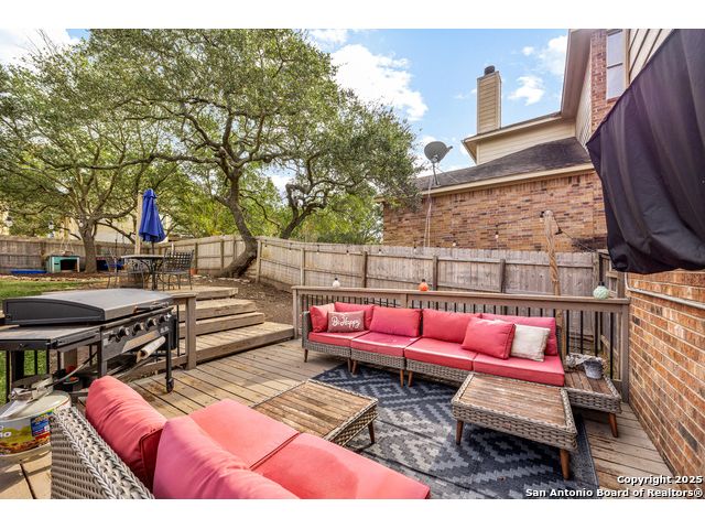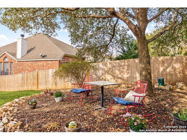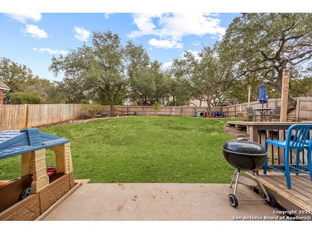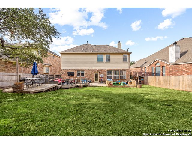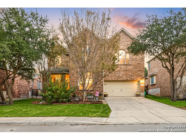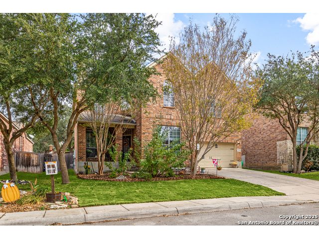 Welcome to this stunning 2-story home nestled within the highly sought-after Cibolo Canyon Resort Community! The main level boasts an impressive array of features, including a formal dining room, a spacious office, and an inviting open-concept kitchen/living room area. The kitchen is adorned with gray cabinets embellished with elegant hardware, granite countertops, subway tile backsplash, and a center island. The kitchen also showcases recessed lighting, a built-in oven, gas cooking, new refrigerator, double oven/microwave, new garbage disposal and an expansive walk-in pantry, providing both style and functionality. Adjacent to the kitchen, a generous family room awaits, complete with a charming corner fireplace and large windows that invite abundant natural light and offer serene views of the private backyard. Upstairs features a spacious family/game room, providing a versatile space for relaxation and entertainment. The primary suite boasts high beamed ceilings, crown molding, and ensuite bath with its sizable shower, ceramic tile flooring, inviting garden tub, and double vanity. Separated from the other three bedrooms, this retreat offers privacy and tranquility. Recent updates to the home include a new 18-Seer A/C unit (2022), a double oven with an airfryer feature, and a newer fence (2022), installed smart thermostats, installed RING security cameras, freshly painted guest bedrooms. Outside, the nicely sized backyard presents the ideal setting for relaxation and entertainment. Whether you choose to unwind on the newly painted deck, enjoy the updated landscaping with fresh sod, and or gather with friends and family on the patio, this space provides the perfect backdrop for you. Living in this extraordinary gated community grants you access to an array of incredible amenities. Indulge in the waterpark for endless fun, explore the playground, enjoy the clubhouse for social gatherings, and maintain a healthy lifestyle in the fitness center. Don't miss the opportunity to make this home your own! Schedule a tour today!