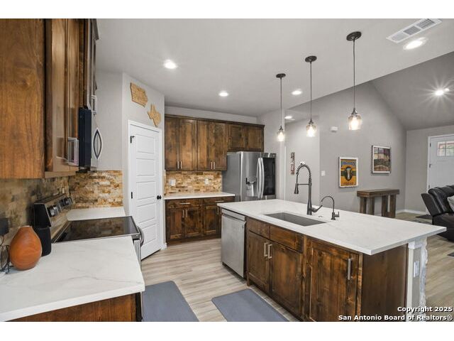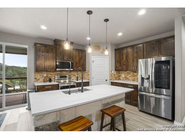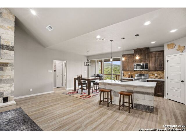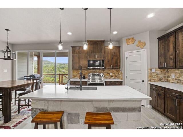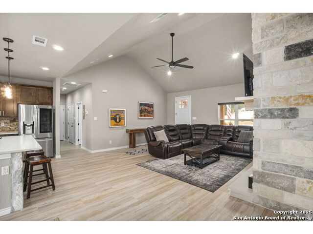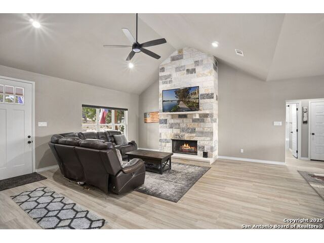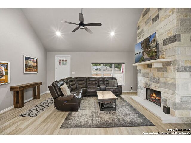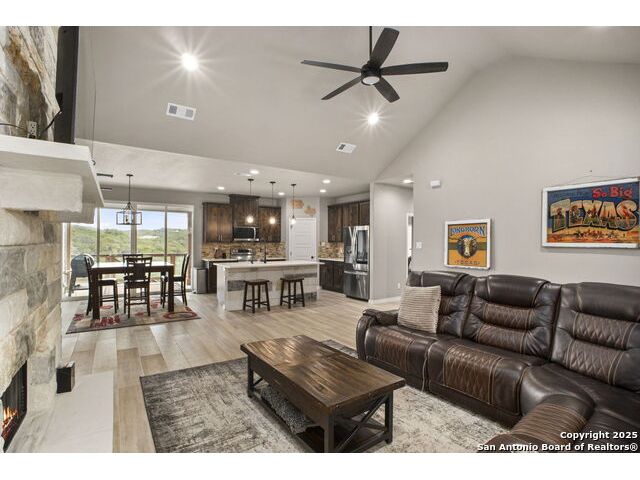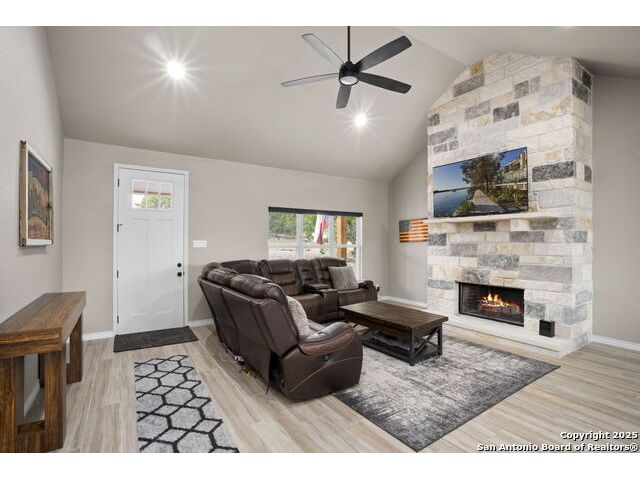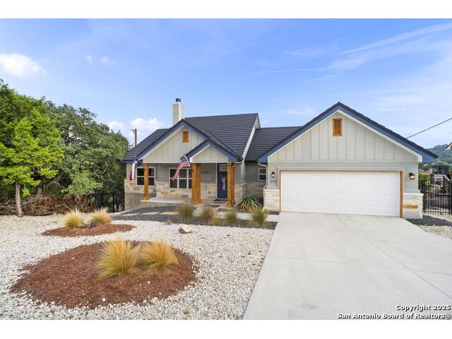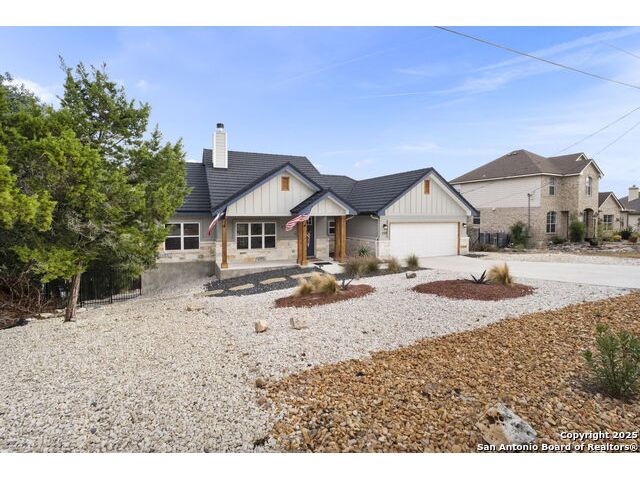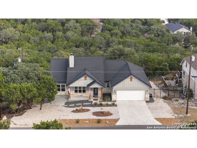 Sellers are offering closing cost assistance with acceptable offers, and the lender is also providing a 1% lender credit toward closing costs - making this beautiful home an even greater value! Experience Hill Country living at its best at 295 Delanoy Dr, a beautifully maintained 3-bedroom, 2-bath home set on an expansive 0.842-acre lot with elevated views and exceptional privacy. The home features a premium Decra Shake Charcoal stone-coated steel roof, offering the durability of steel with the appearance of high-end shake roofing. Step inside to a bright, open floor plan highlighted by vaulted ceilings and a wood-burning fireplace that anchors the living area. Large windows draw in natural light and capture the surrounding landscape. The kitchen and dining spaces flow seamlessly, making the home ideal for both everyday living and entertaining. The exterior is designed for low-maintenance enjoyment, featuring zero-scape landscaping, mature trees, and an inviting outdoor fire pit perfect for evenings overlooking the Hill Country. The generous yard offers space to add additional outdoor living or recreation areas if desired. The primary suite includes a spacious bathroom with a walk-in shower and freestanding tub, while the additional bedrooms provide flexibility for guests, an office, or family needs. The home also includes an owned water softener, reverse osmosis system, and thoughtful interior upgrades. Located just minutes from Canyon Lake, Whitewater Amphitheater, Horseshoe tubing, and within an easy drive of Wimberley, Gruene Hall, and local dining and grocery options, this home combines convenience with the tranquility of the Hill Country. A rare opportunity to own a move-in ready property with views, privacy, and standout upgrades in one of Canyon Lake's most desirable areas.