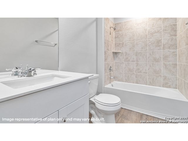 The Commerce is a two-story floor plan offered at Riverstone at Westpointe in San Antonio, TX. Designed to provide you with comfortable living, this home features 2 classic front exteriors, a 1-car garage, 5 bedrooms and 3 bathrooms spaced across 2009 square feet. As you step inside The Commerce, you will notice an open-concept dining area, kitchen and living space that blend seamlessly together so that you never miss a moment. Your spacious kitchen offers stainless steel appliances, desirable shaker style cabinetry and quartz countertops, perfect for any aspiring chef. There is a storage closet located under the stairs and a secondary bedroom and full bathroom just off the living area, ideal for guests. Your main bedroom is located on the second floor and features an attractive ensuite bathroom with plenty of counter space, shaker style cabinets, a combined bathtub and shower and a large walk-in closet. A third full bathroom, a utility room and all remaining bedrooms are located on the second floor. All secondary bedrooms offer quality carpeted floors and a walk-in closet. These rooms are versatile. Use them as bedrooms, offices, work out rooms or other bonus spaces. The Commerce floor plan also includes sheet vinyl flooring at entry, kitchen, hallways, living areas, wet areas, full yard landscaping and irrigation and our HOME IS CONNECTED base package. Using one central hub that talks to all the devices in your home, you can control the lights, thermostat and locks, all from your cellular device.