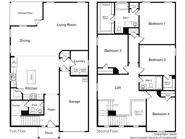 The Stanley is a two-story home featured in our Riverstone at Westpointe community in San Antonio, TX. Offering 3 classic front exteriors, 1-car garage and full yard landscaping and irrigation, this home is sure to impress. Step inside this 4 bedroom, 2.5 bathroom home to find 2243 square feet of open concept living. Whether you're cooking, enjoying a meal or entertaining, you'll never be far from the action with a beautifully blended kitchen, dining area and living room. With quartz counter tops, stainless steel appliances and shaker style cabinetry, this home's kitchen was designed with you in mind. You'll also love a roomy, single basin sink, a spacious corner pantry and an oversized kitchen island with plenty of workspace. A versatile, open to below loft greets you at the top of the stairs and is a perfect play room or entertainment area. Quality carpet and large windows that provide natural light make this a well rounded space. The primary bedroom is located upstairs and is built with an attractive ensuite bathroom. The main bathroom features a quartz vanity counter top, a combined shower and bath tub and a grand walk-in closet with built-in shelving. A second full bathroom and all secondary bedrooms are also located upstairs. Whether you are using these rooms as bedrooms or other bonus spaces, all include quality carpet and closets. Additional features include sheet vinyl flooring in entry, living room, and all wet areas, quartz bathroom counter tops and our HOME IS CONNECTED base package. Using one central hub that talks to all the devices in your home, you can control the lights, thermostat and locks, all from your cellular device.