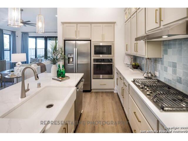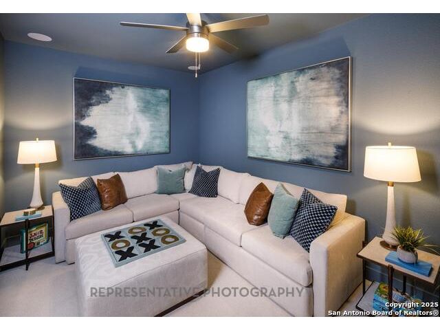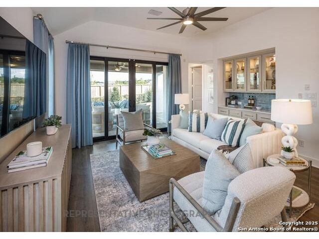 This stunning 2,300 sq. ft. single-story home features soaring high ceilings and a thoughtfully designed layout perfect for multigenerational living. It offers 3 spacious bedrooms and 3.5 baths, including two primary suites, each providing comfort and privacy. A dedicated study and a versatile entertainment room add flexibility for work, play, and relaxation. Nestled in a beautiful community known for having one of the lowest tax rates in New Braunfels, this home blends modern convenience with exceptional value.