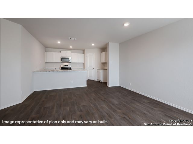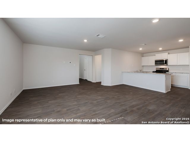 Introducing The Reese, a two-story home featuring 4 bedrooms, 2.5 baths and a 1-car garage in Riverstone at Westpointe, a new home community located in San Antonio, TX. Here you will find a beautiful open-concept layout with 2084 square feet of living space. Your living room, dining area and kitchen blend together seamlessly with plenty of room for everyday living. The gourmet kitchen includes quartz countertops, stainless steel appliances, and plenty of shaker style cabinets for ultimate storage. The private primary bedroom is located downstairs toward the back of the home and features quality carpet flooring and an attractive ensuite bathroom, complete with a single vanity sink and quartz counter top, shaker style cabinets, a linen closet, and a grand walk-in closet. The second story includes a large game room or loft that is open to below and provides plenty of space for game or movie nights. Additionally, a second full bathroom with a linen closet, a large storage space that includes a laundry room and three secondary bedrooms are also located upstairs. These rooms are versatile. Use them as bedrooms, offices, work out rooms or other bonus spaces. Additional features of The Reese floor plan include sheet vinyl flooring in entry, living room, and all wet areas, quartz bathroom counter tops throughout the home, and a rear covered patio (per plan) over looking full yard landscaping and irrigation. This home includes our HOME IS CONNECTED base package. Using one central hub that talks to all the devices in your home, you can control the lights, thermostat and locks, all from your cellular device.