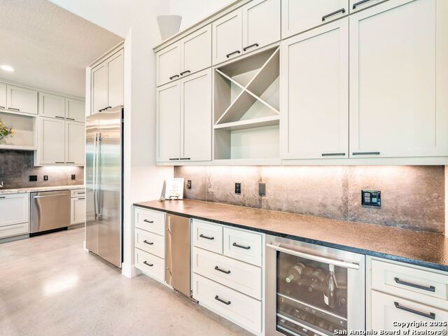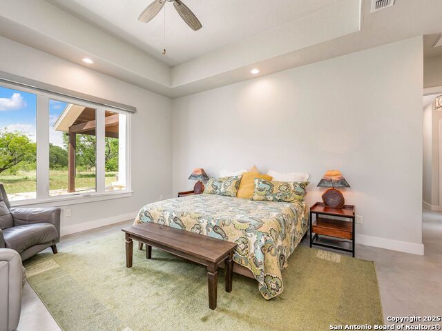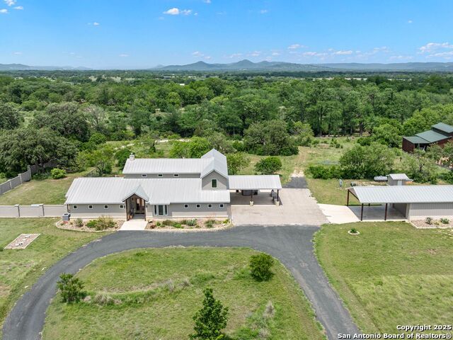 Welcome to a one of a kind luxury home in Utopia Texas! This stunning riverfront retreat features over 3,800 square feet of meticulously designed living space, with more than 400 feet of access to the picturesque Sabinal River. The property includes four spacious bedrooms and four and a half elegant bathrooms. Upon entry, you are greeted with tall ceilings and a showcase of windows that frame breathtaking views of the surrounding hills and the backyard leading down to the river. The gourmet kitchen serves as the heart of the home, providing easy access to all areas while showcasing top-of-the-line finishes. With two impressive islands and high-end Jenn Air appliances, including a double oven and a six-burner gas cooktop, this kitchen is designed for both functionality and style. Custom cabinets and luxury lighting further enhance this inviting space, complemented by polished stained concrete flowing throughout the first level, offering a modern yet welcoming atmosphere. The adjoining family room features a dramatic gas fireplace that serves as a focal point for gatherings, providing warmth and ambiance. This spacious area is designed to accommodate everyone comfortably, with ample room for seating and entertainment. The setup includes an impressive 86-inch TV and a surround sound system that can be zoned to different areas throughout the house and outside, creating an ideal atmosphere for movie nights, game days, or entertaining guests. The primary suite is a true retreat, featuring an oversized bathroom with separate vanities, a walk-in shower, and a generous closet with built-in storage. Just off the primary is an area every fur baby is sure enjoy while being climate controlled and offering outside access to a full dog run. Each of the four bedrooms comes with its own private bath, ensuring comfort and privacy for the owner and guests alike. Venture upstairs to find a fourth bedroom with its own bathroom and a game room that opens to a covered balcony, offering breathtaking views of the expansive acreage and the river nearby. With 360-degree views of the surrounding hills, the property invites you to relax and soak in the natural beauty. This home is equipped with a well and water storage, along with a two-car garage and shop area complete with air conditioning and heat. A separate roll-up door garage provides additional storage, complemented by a two-car carport and ample concrete space for extra parking. The spacious back porch overlooks the backyard and leads down to the river, making it an ideal spot for enjoying the natural surroundings. It features an outdoor cooking area and provides access to an outdoor bathroom, enhancing the convenience of outdoor living. Set on just over 10 acres, every corner of this estate is finished with high-quality materials, providing windows that frame incredible views for miles. Experience luxury living in a serene, picturesque environment! Motivated seller.