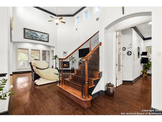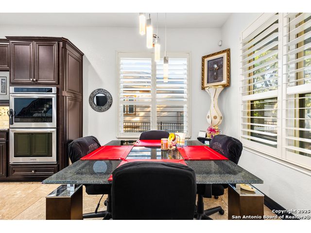 Lovely 2-story home in one of the hottest areas in town, featuring our most popular floor plan with a charming front courtyard, elegant rotunda entry, and a spacious rear patio with a fully equipped outdoor kitchen. This thoughtfully designed home offers two bedrooms plus a study downstairs, and two additional bedrooms with a game room upstairs. The gourmet kitchen boasts granite countertops, double ovens, breakfast bar, walk-in pantry, and two dining areas. Additional highlights include covered patio, gas grill, wrought iron fence, sprinkler system, double pane windows, gutters, mature trees, and energy-efficient features. Enjoy multiple living areas and spaces perfect for entertaining or relaxing in style.