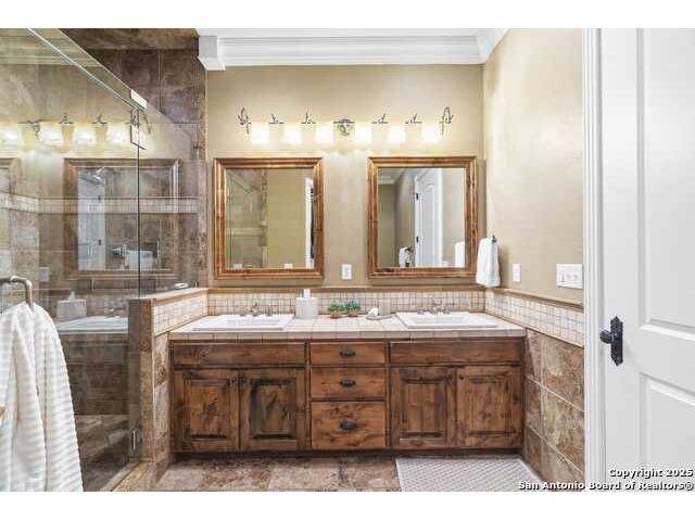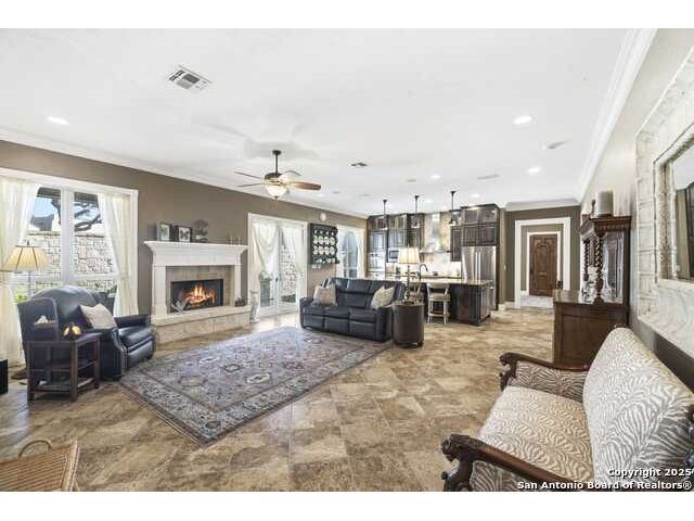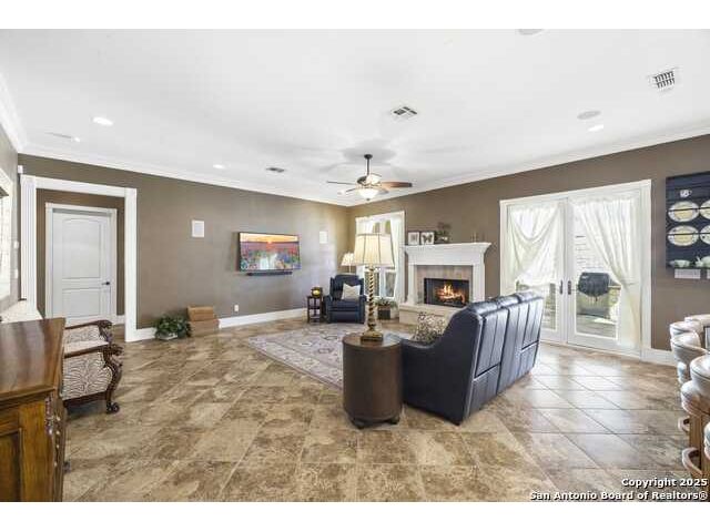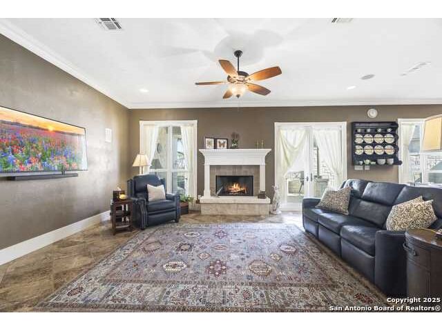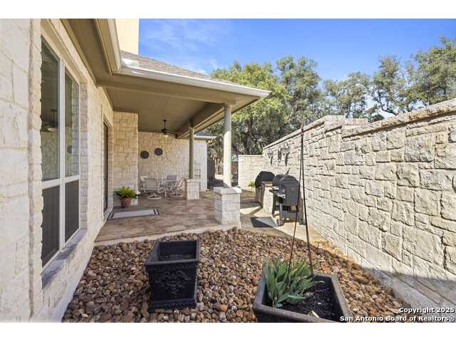 THIS LISTING IS FOR 150 ST ANDREWS LOOP AND THE ADJOINING LOT, LOCATED AT 148 ST ANDREWS LOOP. THE HOUSE AND LOT ARE ALSO AVAILABLE TO PURCHASE SEPARATELY. HOUSE ONLY IS LISTED FOR $629,900 AND THE LOT ONLY IS LISTED FOR $70,000. Step inside this beautifully crafted custom home, where thoughtful design and timeless finishes create a warm, welcoming story from the very first moment. Porcelain tile floors flow seamlessly through an open-concept layout, guiding you toward a spacious family room centered around a charming wood-burning fireplace-an inviting space for quiet evenings, lively gatherings, or simply relaxing at the end of the day. The chef's kitchen is a true highlight, with custom alder cabinetry that stretches to the ceiling, a magnificent 5' x 11' island that encourages conversation, and an RO filtered water system for everyday convenience. It's a kitchen designed to bring people together, whether for cooking, entertaining, or sharing a meal. Throughout the home, elevated architectural touches add an air of understated elegance. Ten-foot ceilings create a sense of openness, while 8' solid-core interior doors with antique hardware, wide crown molding, and generous baseboards showcase craftsmanship rarely found today. Plantation shutters on the front-facing windows provide both beauty and privacy, enhancing the home's classic appeal. Modern updates offer comfort and confidence, including a Daikin 4-ton HVAC system installed in 2022, a roof replaced in 2017, and a newer water softener added in 2022. The oversized 3-car garage goes beyond expectations with insulated doors and a dedicated mini-split-ideal for workshop projects, hobbies, or keeping vehicles protected year-round. Step outside to a peaceful side patio designed for effortless outdoor living. A built-in Weber grill set into granite countertops provides the perfect setup for weekend barbecues or evening dinners enjoyed under Hill Country skies. It's an intimate space that feels both private and inspiring. The primary suite offers its own retreat, complete with a versatile bonus room that can serve as a dream custom closet, a quiet office, a craft or sewing room, an exercise space, or simply additional storage. It's a room designed to adapt to your lifestyle with ease. With thoughtful additions like home-run wiring for TVs, computers, and phones, along with a custom installed 5.1 speaker system in the family room, and ADT Security System, this home brings together comfort, craftsmanship, and modern convenience at every turn. It's a place where quality is felt, beauty is appreciated, and daily life becomes just a little more enjoyable.