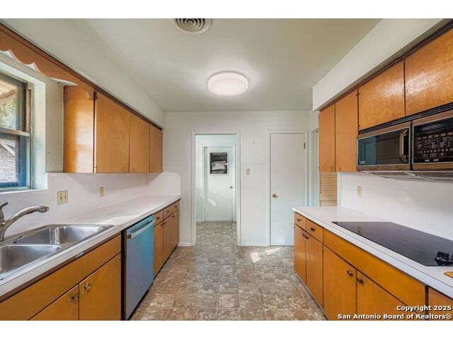 Welcome to a classic mid-century ranch in the heart of Windcrest. Whether you're looking to restore its mid-century charm or modernize it to your vision, this gem offers an incredible opportunity in a prime location. This spacious single-story home offers timeless charm, generous living spaces, and a floor plan that's perfect for both everyday living and special gatherings. Living room and dining room combo, ideal for hosting friends and family. A separate family room with a cozy fireplace creates the perfect spot for movie nights or relaxing evenings. Need extra space? You'll love the dedicated office/flex room with fireplace giving you options for a home office, studio, or additional living area. The kitchen with breakfast nook maintains its vintage character while featuring an updated cooktop & dishwasher. The refrigerator is included, making move-in even easier. With 4 bedrooms and 3 full bathrooms, the layout offers flexibility for guests, multi-generational living, or creating specialized spaces to suit your lifestyle. Out back, enjoy a private yard with a covered patio, perfect for outdoor dining, unwinding, or weekend barbecues. The property also includes a two-car side-entry garage, adding convenience and curb appeal. Recently replaced roof for peace of mind and a head start on future improvements.