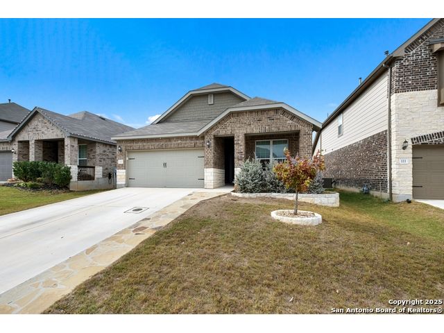 Affordable comfort in Boerne TX with Boerne ISD under $400K! Welcome home to this well maintained, well updated home built in 2020 that resides in a wonderful, newer community with easy access to IH10 and just minutes from Main St Boerne! Updates include AC/Heat split system in garage that makes for a great workshop, fitness area or pampered vehicles, rock planters at front, expanded walkway at driveway, water softener, extra cabinetry in laundry, extra storage in home, custom blinds thru-out, vintage chandelier at entry, bay windows at primary bedroom, tile backsplash at kitchen, gas cooking, granite tops, custom kitchen drawer inserts, tile flooring thru-out except for bedrooms, no immediate neighbor at back for additional privacy, and much more! Dont miss viewing the great community center that includes pool and clubhouse!