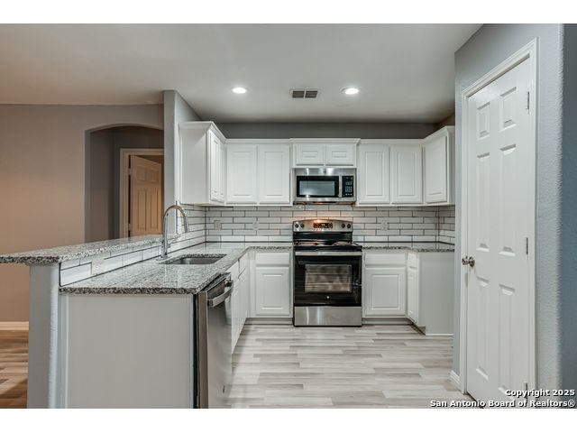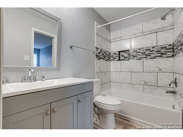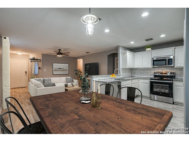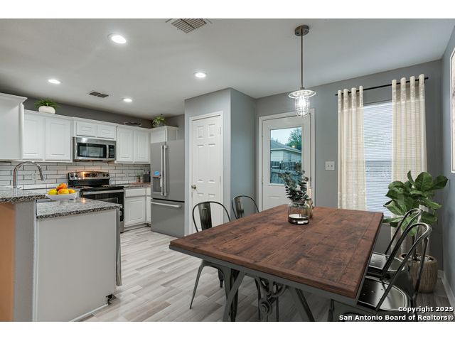Located on the far Northwest side of San Antonio near Loop 1604 and Highway 90, this updated 3-bedroom, 2-bathroom home offers both comfort and convenience. With quick access to major roads and just minutes from Lackland Air Force Base, it's perfectly positioned near plenty of dining options, shops, and everyday essentials. As you walk inside, the home features a fresh, modern look with newly updated interior paint and no carpet throughout-making it both stylish and easy to maintain. The open floor plan creates a spacious feel, ideal for entertaining or simply relaxing at home. Modern touches can be found throughout the property, giving it a true move-in-ready, turn-key appeal. The primary bedroom features a large walk-in closet, perfect for the family fashionista. The kitchen has plenty of cabinet storage as well as a separate pantry to make it easier for organization. A one-car garage with added space with washer and dryer connections adds extra convenience, and the overall layout is smartly designed to maximize every square foot. Whether you're a first-time homebuyer looking for the perfect home to start your next chapter or an investor looking to grow your rental portfolio, this home is a smart and solid choice in a fast-growing area.