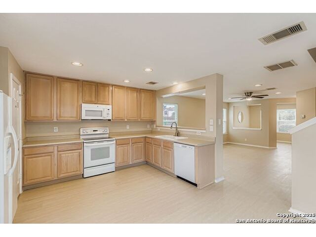 Previous Model Home, that offers true low-maintenance living on a corner lot in a prime location. Minutes to UTSA, La Cantera, and The Rim, this home features fresh paint, new flooring, a dedicated study, and solid countertops with all appliances included. The astro-turf backyard with fire pit means no mowing and easy entertaining. Great investment opportunity for Airbnb, long-term rental, or owner-occupied living. Move-in ready and perfect central location in San Antonio. Calling all First Time Home Buyers and Downsizers!