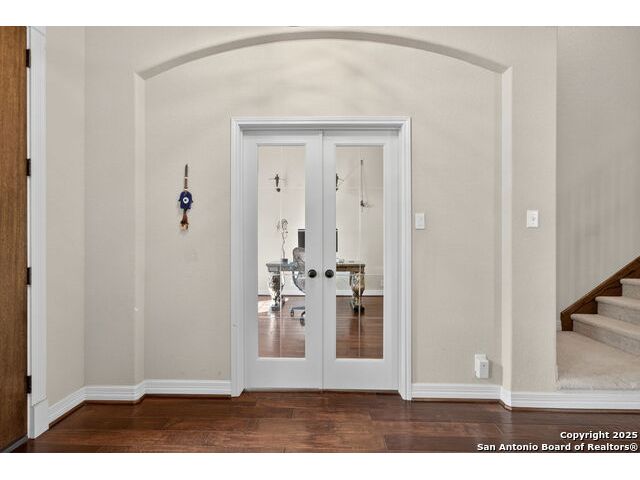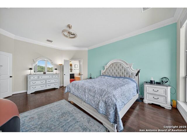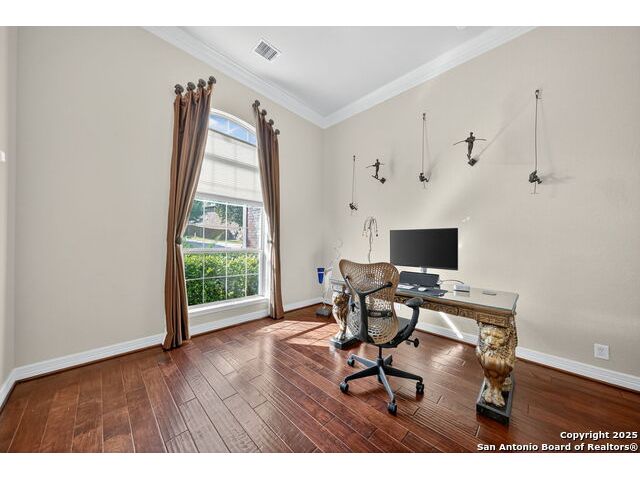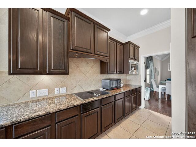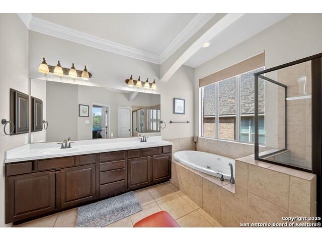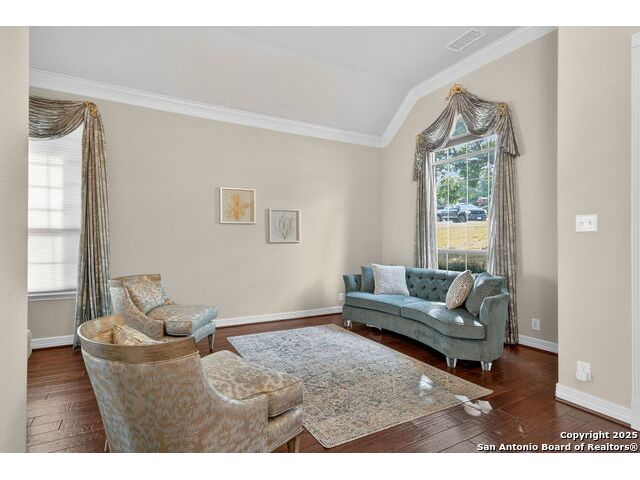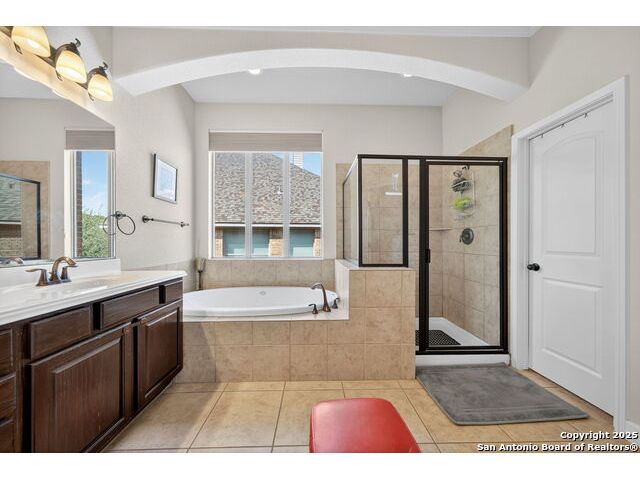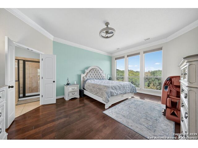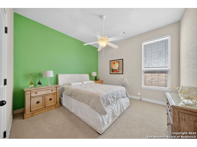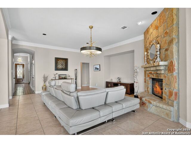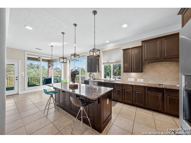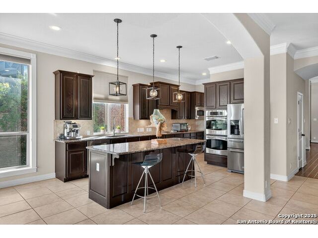 Experience refined living in this exceptional 4-bedroom, 3.5-bath residence, perfectly positioned along an expansive greenbelt for unmatched privacy and breathtaking natural vistas. A grand formal living and dining area sets an elegant tone upon entry, flowing seamlessly into a gourmet kitchen appointed with a generous island and open sightlines to the sophisticated family room. Walls of windows invite abundant natural light and frame sweeping Hill Country views, leading to an oversized covered patio ideal for elevated indoor-outdoor entertaining. The main level showcases a serene primary suite with a spa-quality ensuite, complemented by two additional well-appointed bedrooms. A versatile fourth bedroom with a full bath-currently arranged as an impressive game room-offers flexibility for guests or leisure. Additional luxuries include an oversized garage with premium epoxy flooring and an EV charging station.