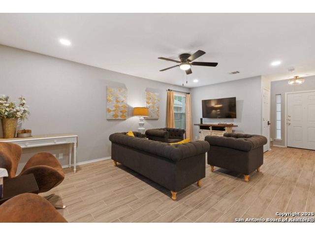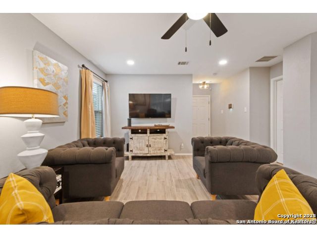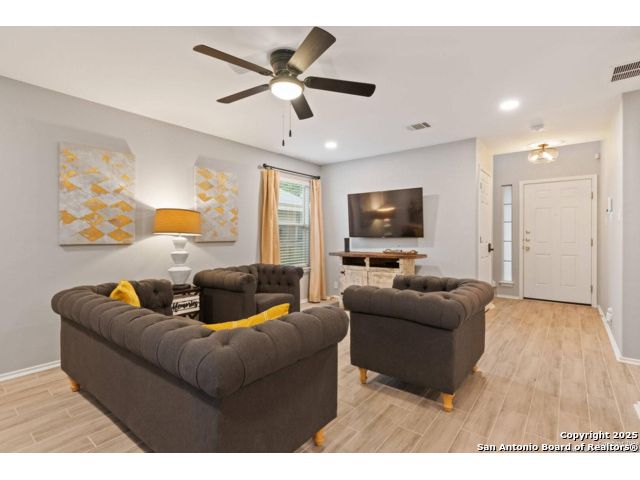 Discover modern living in this stunning 3-bedroom, 2.5-bathroom residence located minutes from Sea World, 1604, Hwy 90, and 151. This prime location offers convenient access to shopping, entertainment, and is within a short commute to Lackland Airforce Base. With the open layout concept, the living area becomes an extension of the kitchen, allowing natural light to flood eat in kitchen area and the living room space. Kitchen features granite countertops and stainless steel appliances. All spacious bedrooms are upstairs and there is no carpet throughout. Backyard boasts xeriscape landscape for easy maintenance. Schedule your showing today!!