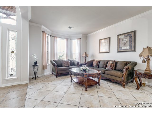 Nestled in the highly sought-after Stone Oak area and desirable NEISD school district, this immaculately kept two-story home boasts newly painted walls and stunning tile flooring throughout. *Priced below Tax Accessor's value* This is perfectly suited for multi-generational spacious living, with three car garages, three living areas, two dining areas, an expansive kitchen area with upgraded granite countertops and a large island is perfect for big family gatherings. A guest bedroom or home office with an upgraded full bathroom and a large laundry room is conveniently located on the main level. Upstairs includes four additional bedrooms, an oversized primary suite with a covered balcony and serene views, dual walk-in closets, and an upgraded granite bathroom with linen space. A versatile game/living room and three additional full bathrooms complete the second level. Outdoor living shines with a large covered deck plus picturesque views from both the upstairs balcony and lower deck ideal for relaxing or entertaining with several fruit trees. Located in a desirable quite community with low HOA fees. This home truly embodies the perfect blend of comfort, style, and outdoor living!! Schedule your showing today!