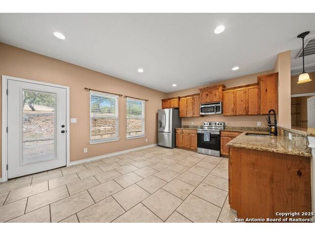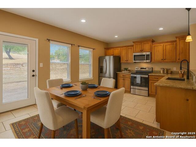 Tucked away at the end of a quiet cul-de-sac in the desirable Rocky Creek Ranch subdivision, this secluded .71-acre property offers the perfect blend of privacy and Hill Country charm. The fully fenced and gated lot surrounds a warm and inviting home featuring an open-concept floor plan, a spacious eat-in kitchen with granite countertops, knotty pine cabinetry, recessed lighting, and a thoughtful split layout with 3 bedrooms and 2 full bathrooms. Rocky Creek Ranch is located in Canyon Lake's northern hotspot, just minutes from Potters Creek Park, Canyon Lake High School, and a variety of shops and restaurants. Residents enjoy access to a gated amenity park complete with a sparkling pool, sport court, clubhouse, and pavilion-making this an ideal retreat for comfort, convenience, and Texas Hill Country living.