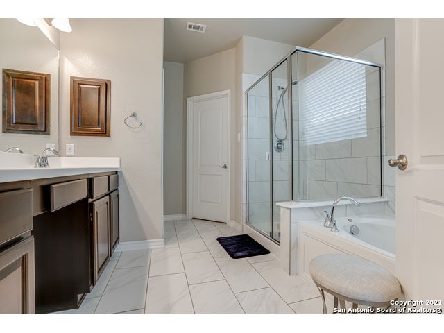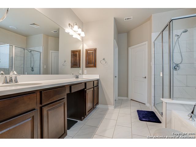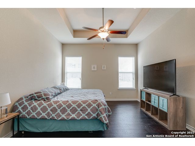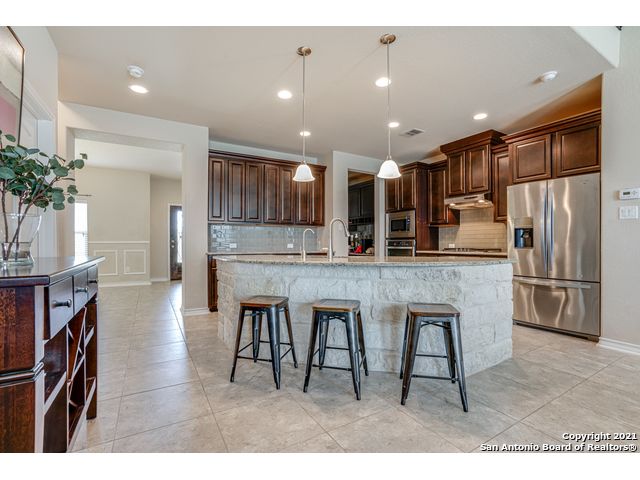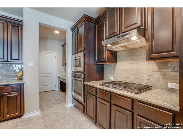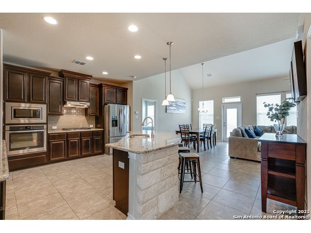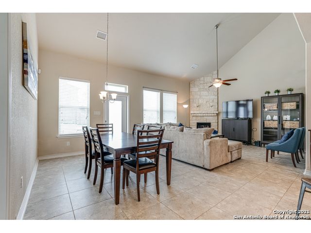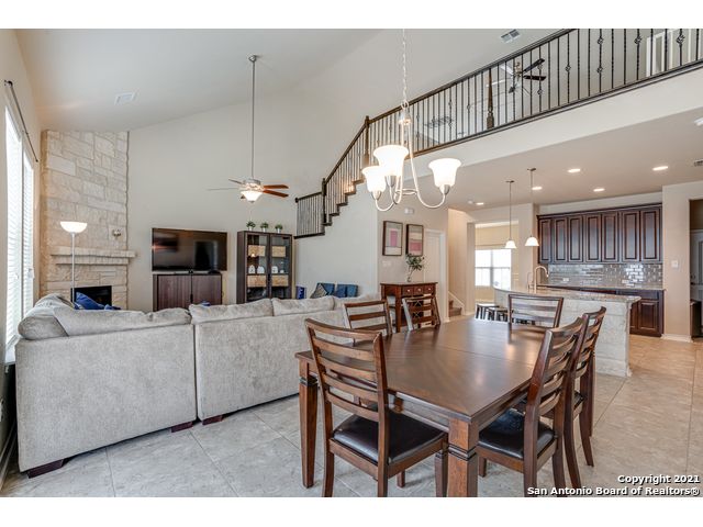 Discover this stunning home in the gated community of Ridge at Lookout Canyon! As you enter, a formal living area welcomes you into a space featuring an open floor plan with impressive 18-foot ceilings in the family room. The kitchen is beautifully appointed with granite countertops, a glass tile backsplash, upgraded cabinets, a gas cooktop, and a spacious breakfast bar/island with stone accents, complemented by a floor-to-ceiling corner fireplace. The neighborhood offers easy access to Comal ISD schools, community amenities, restaurants, and shopping, with residents enjoying a pool, playground, tennis and basketball courts, and a covered pavilion. Conveniently located near Highway 281 and Canyon Golf Road.