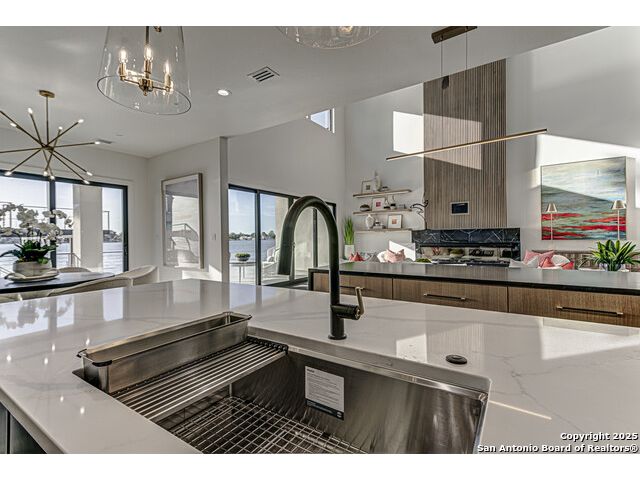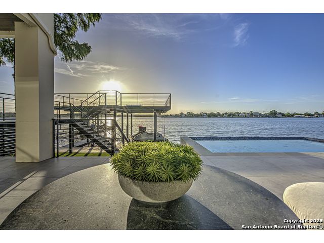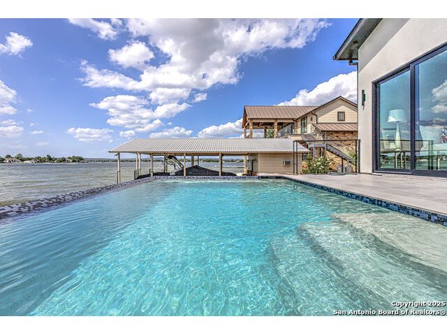 Welcome to an exquisite new construction at 1012 Impala Drive, Granite Shoals, TX, where elegance meets serene lakeside living.This home is Award Winning Hill Country Parade of Homes, Nestled on a generous 11,325 square foot lot with 93 feet of Open Water Lake LBJ , this waterfront sanctuary offers breathtaking open water views of Lake LBJ. The thoughtfully designed interior boasts high ceilings and abundant natural light, accentuated by expansive windows. Culinary enthusiasts will revel in the gourmet kitchen, featuring high-end appliances, including a wine fridge and espresso machine, along with two islands for effortless entertaining. The main level primary suite offers tranquil vistas views with access to your own private patio. There is an ensuite on main level. Upstairs you will find another ensuite, along with a bunkhouse with custom bunkbeds, huge shower and bathroom with double vanity, spacious family room that has a covered patio with amazing views. Outdoor living is redefined with a private courtyard as you enter the home. Backyard entertaining at it's finest, Backyard kitchen, fire pit, a stunning Plunge Pool design by Denali Pools. A custom bridge leading to a boat dock with jet ski lifts or take stairs up and there is a party deck with amazing water and panoramic views, along with a swim deck. A two-car heated and air condition garage completes this stunning one of a kind lake home on Open Water Lake LBJ.