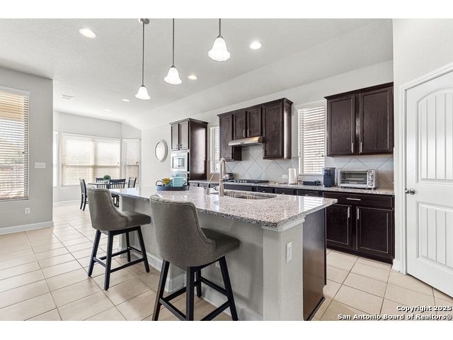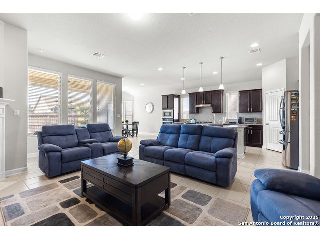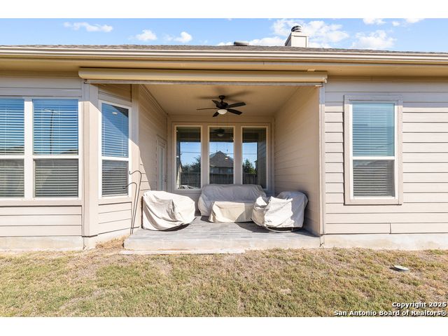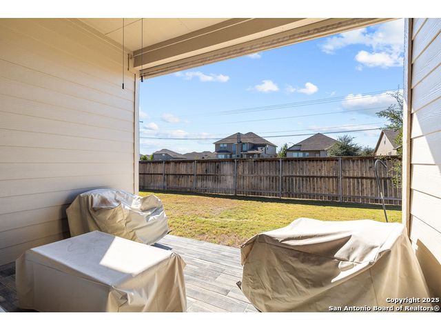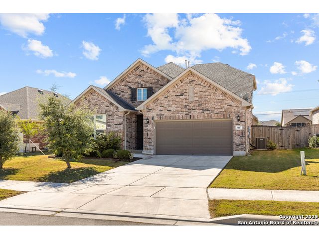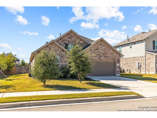 Prepare to be impressed by this elegant and exceptionally functional 1.5 Story residence, perfectly situated in a highly sought-after community and proudly zoned for the highly-regarded Comal ISD, including the acclaimed Davenport High School and Danville Middle School. Key Property Features are 4 sides masonry, 3 BR/3.5 Bath with large bonus room upstairs with a full bath and closet. Study/Office/Flexroom area downstairs. The heart of this home is a culinary dream. The gourmet, gas-cooking kitchen boasts sleek granite countertops, stainless steel appliances including a 5-burner gas cooktop and a built-in oven, and a huge amount of prep space on the oversized center island. It flows seamlessly into the light-filled extended living room, creating a fantastic open space for entertaining and daily life. A dedicated, formal separate dining room offers the perfect setting for holiday meals or intimate dinner parties. Thoughtfully Designed Floor Plan The 1.5-story layout provides the ultimate flexibility. All main bedrooms and the principal living areas are conveniently located on the first floor. A private study/flex room near the entry offers a quiet space for a home office, library, or hobby room. Ascend the staircase to discover the private retreat of the upstairs flex room. Complete with its own full bathroom and closet, this space is perfect as a private media room, a fourth guest suite, a gym, or an expansive playroom-the possibilities are endless! Enjoy the Texas outdoors on your extended covered patio ideal for evening relaxation or weekend grilling. The home is built with durable, low-maintenance four-sides brick construction, ensuring lasting quality and exceptional curb appeal. Location is everything! Benefit from the excellent educational opportunities provided by the highly-rated Comal Independent School District, zoned specifically for Davenport High School and Danville Middle School. Quick access to I35 and Randolph AFB. This property perfectly balances luxury, space, and a premium location.