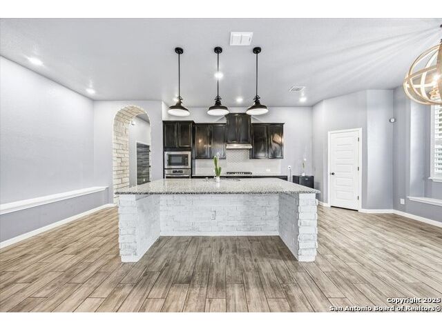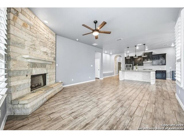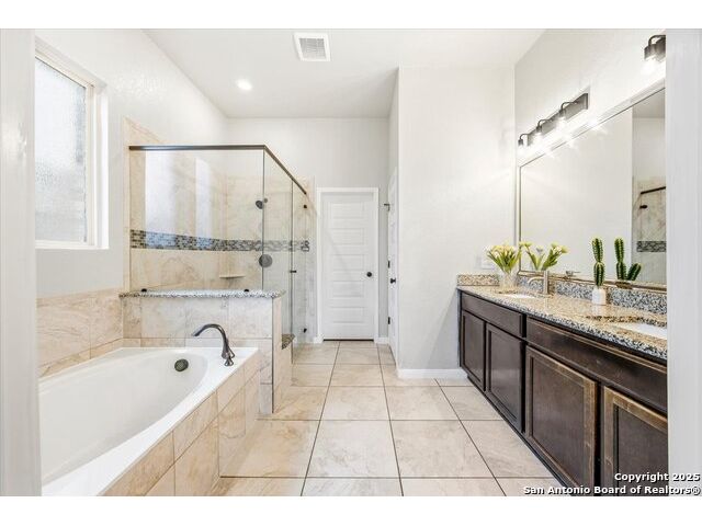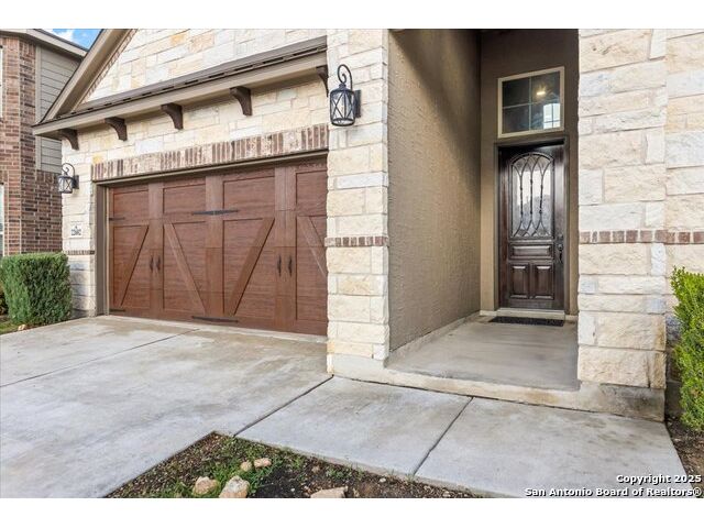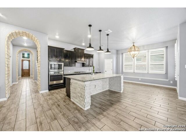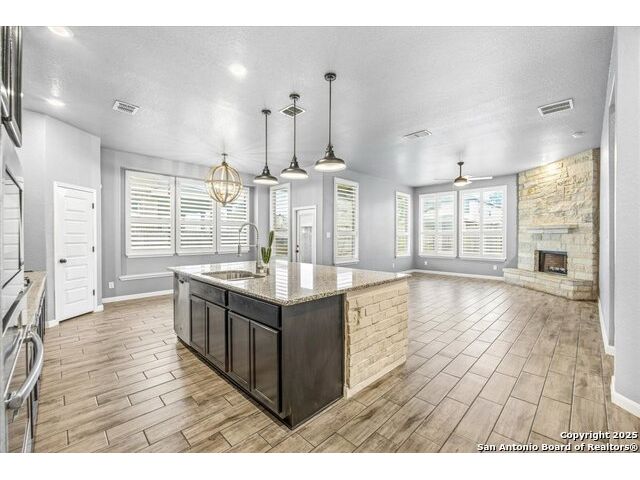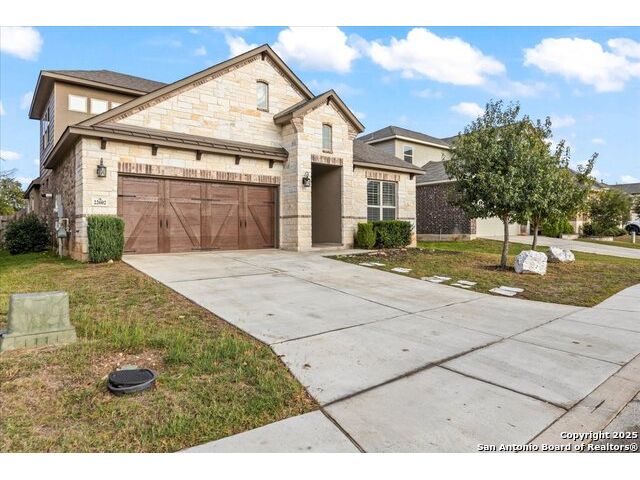 Welcome to your dream home, a stunning residence in a gated community that combines elegance and comfort in 3,000 square feet of thoughtfully designed space. Priced significantly below its tax value, this property presents an incredible opportunity for discerning buyers seeking both value and quality. As you approach the house, you're greeted by a captivating stone front and an ornate garage door, setting a regal tone that echoes throughout the entire living space. Stepping inside, you will immediately be drawn to the grandeur of stone archways that grace the entrance, creating a warm and inviting atmosphere. The expansive open kitchen is a chef's dream, featuring a magnificent stone island that serves as both a functional workspace and a gathering spot for family and friends. With ample counter space and a roomy pantry, this kitchen promises convenience and efficiency for all your culinary adventures. The charm of the living room is highlighted by a beautiful stone fireplace, providing a cozy focal point for gatherings or quiet evenings at home. This thoughtfully designed space offers both comfort and style, making it the perfect place to unwind after a long day. The first floor boasts three well-appointed bedrooms, including the primary owner's suite. This tranquil retreat features dual vanities that provide ample space for your morning routine, a separate tub for relaxation, and a spacious shower, ensuring a spa-like experience at home. Adding to the allure, the first floor also includes a game room that invites fun and entertainment, whether hosting friends for game night or creating a personal retreat for family activities. The layout flows seamlessly, maximizing both space and functionality. Head upstairs to discover two additional bedrooms, offering plenty of room for family or guests. Each room is designed with comfort in mind, ensuring everyone has their own private haven. All bathrooms feature tasteful tile work around the tubs, enhancing their elegance and practicality. Throughout the home, you'll find a combination of tile and luxury vinyl plank floors, providing beauty and easy maintenance while ensuring a stylish look in every room. This exceptional property perfectly balances grandeur and everyday living. With its stunning stone features, spacious layout, and incredible value, it truly is a must-see for anyone looking for their perfect home. Don't miss out on the chance to make this remarkable residence your own and experience the richness of its design and comfort for years to come.