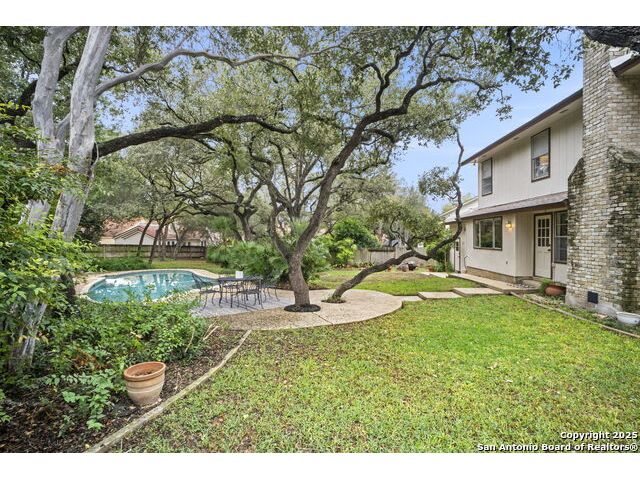 Nestled in a serene, established neighborhood, this exquisite 2,431 sq ft residence offers 4 bedrooms and 2.5 baths on a beautifully landscaped .37-acre lot that evokes the tranquility of a private park. Towering mature trees frame the property, providing shade, seclusion, and a picturesque backdrop rarely found within the city. The resort-style backyard is a true sanctuary, showcasing a sparkling pool and spa enveloped by lush greenery-perfect for sun-drenched afternoons, elegant entertaining, or unwinding in serene privacy. Expansive lawn areas invite outdoor living, from alfresco dining and play spaces to garden retreats or future enhancements, combining versatility with undeniable charm. Inside, the thoughtful layout separates private and shared spaces with all four bedrooms tucked upstairs, ensuring comfort and privacy. The main level is designed for effortless living and entertaining, featuring multiple flexible spaces ideal for a cozy reading nook, home office, or stylish gathering area. Sunlight streams through generous windows, casting a warm, uplifting glow throughout the home. Situated within a top-rated school district and just minutes from premier shopping, dining, and everyday conveniences, this home pairs privacy and refinement with unmatched location. With no HOA, enjoy the freedom to make this elegant retreat uniquely your own. Combining sophistication, comfort, and a park-like setting, this residence is more than a home-it's an invitation to a lifestyle of relaxation and ease from the moment you arrive.