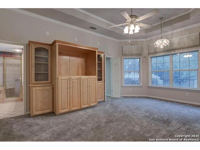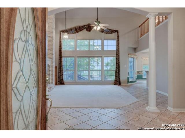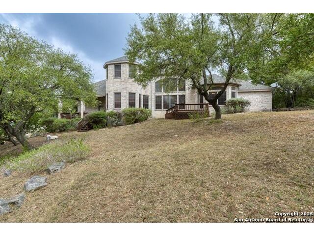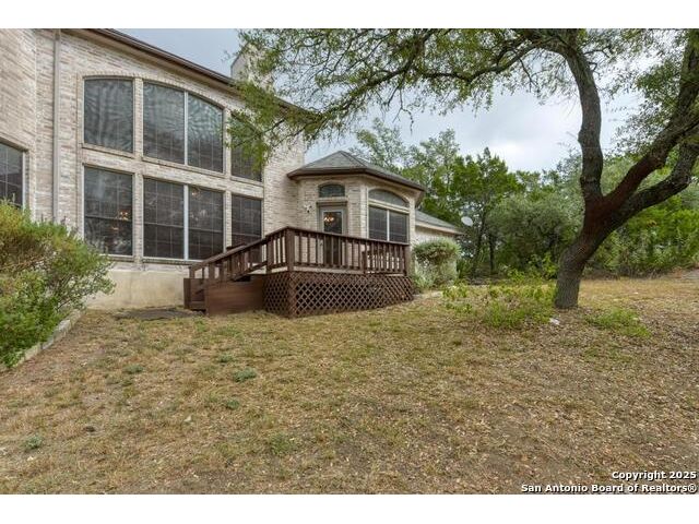 Stunning executive home with all the bells and whistles has been loved and well maintained. This beauty sits on more than a half an acre of Texas Heaven! Immaculate curb appeal to welcome you home in style with manicured yard and precision landscaping. Grand entry area opens to graceful architecture, dual pillars, soaring ceilings, and a beautiful view through the large windows that provide abundant natural light. Entertainer's Delight! The main Living area features an impressive fireplace with brick from floor to ceiling. The convenient built-in wood shelves demonstrate true craftsman's quality. Formal Dining area includes gorgeous chandelier sure to captivate your guests. Extraordinary Kitchen has double ovens, incredible storage and counter space area, and a huge walk-in pantry, with a lift that allows you to easily get your groceries from the garage to the pantry! The informal dining area has bay windows to enjoy causal meals with a view! All bedrooms downstairs. Primary Suite has a private outside exit to its own exclusive deck. Upstairs features a massive game room overlooking the main living area, with a wet bar and sitting area to enjoy starry night skies or amazing March Madness and Super Bowl parties! Two car garage plus ample uncovered parking. Breathtaking backyard with a large wood deck for hours of outside fun! Solar panels are functional! Luxurious county living, yet close to all the major city conveniences off 281 and 1604, like shopping, restaurants, entertainment and more! Neighborhood amenities include 9 hole golf course, tennis, pool and clubhouse. Superb Comal ISD with neighborhood elementary school and Pieper Ranch MS and PIEPER HS! Tons of storage under stairs. This is a must to see!