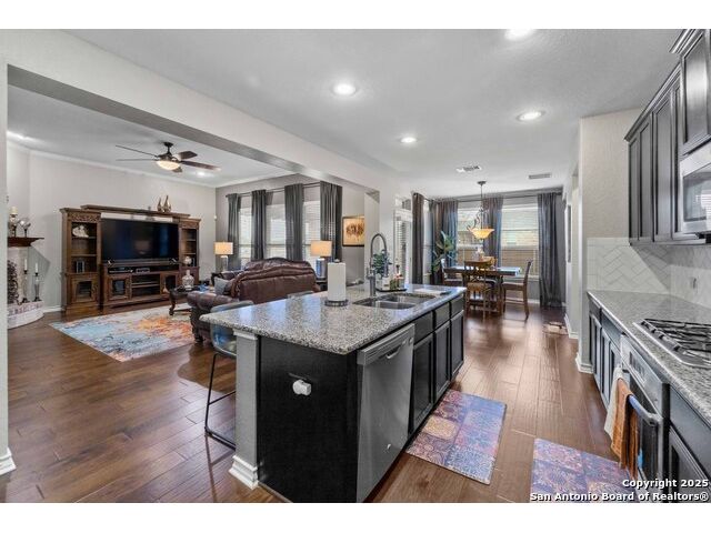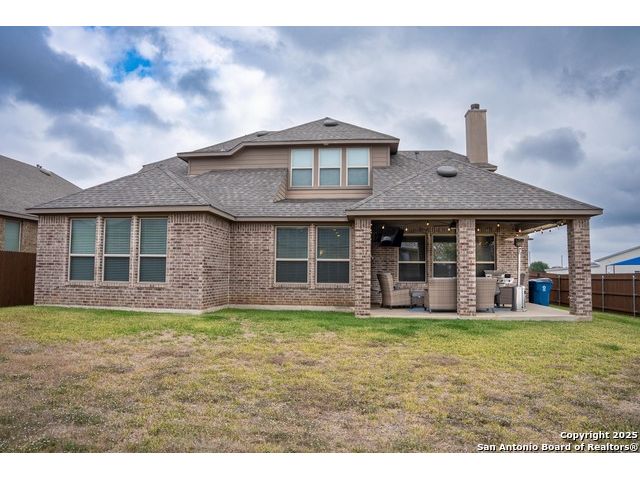 Step into this beautifully kept two-story home offering generous space, abundant natural light, and a warm, inviting layout. The kitchen features maple-stained cabinetry, granite countertops, a gas cooktop, and stainless steel appliances perfect for cooking and entertaining. The home includes upgraded hardwood flooring, tile, and carpet, complemented by 4-side brick construction with elegant stone accents. Enjoy a spacious, oversized covered patio ideal for outdoor gatherings, along with a front and back sprinkler system. Recent updates include a brand-new roof, new stained fence, 2 new water heaters, and a HVAC system that is professionally maintained every season, offering peace of mind and long-term value. This home has been kept exceptionally well cared for truly a must-see!