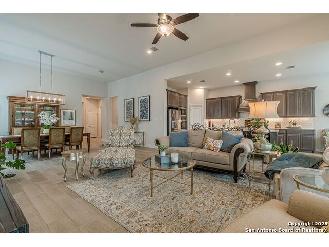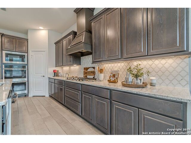 Step into this spectacularly designed 1-story Perry home, built in 2021, offering 2,973 Sq Ft of beautifully lit and spacious living. Nestled in the highly desirable Kallison Ranch community with resort-style amenities, this 4-bedroom, 3.1-bath gem is the perfect blend of style and functionality. From the dedicated office and media room to the 3-car tandem garage, every inch of this home has been thoughtfully crafted for comfort and elegance. The expansive open layout, oversized windows, and high ceilings invite natural light, creating a warm and inviting atmosphere that's ideal for both entertaining and everyday living. A chef's dream kitchen awaits, featuring two built-in ovens, a gas cook-top, a walk-in pantry, and an abundance of cabinet space, perfect for culinary creations and effortless entertaining. Retreat to the luxurious primary suite, designed for relaxation, with dual vanities, a soaking tub, a separate glass- large enclosed walk-in shower, and stunning redesigned custom-built his-and-hers walk-in closets. These thoughtfully crafted spaces offer tailored organization, generous storage, and an elegant feel. One of the spacious secondary bedrooms features its own private en-suite along with a custom-designed walk-in closet, offering both convenience and elevated storage solutions. The home also boasts a large laundry room, thoughtfully designed for efficiency and style, complete with custom, well-designed cabinets that provide ample storage and organization. Enjoy seamless indoor-outdoor living with a 19'X13' covered patio, perfect for al fresco dining or unwinding in the fresh air, plus no neighbors behind you for added tranquility and privacy. Kallison Ranch offers an amenity-rich lifestyle, featuring lush resort-style pools, clubhouse, playgrounds, fishing pond, BBQ, lounge areas and a place to relax by the fire. With modern conveniences and timeless beauty, this home is a rare find, perfectly blending elegance, functionality, and community. Convenient Location - Enjoy quick access to top-rated schools, shopping, dining, and major highways, making your daily routine effortless. This home is a MUST SEE TO APPRECIATE!