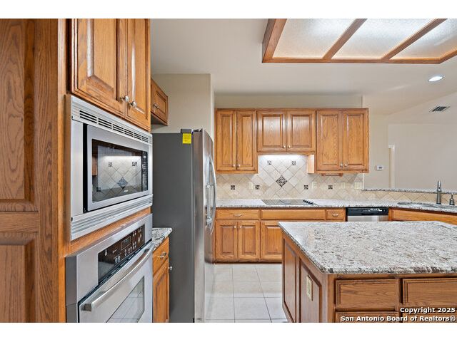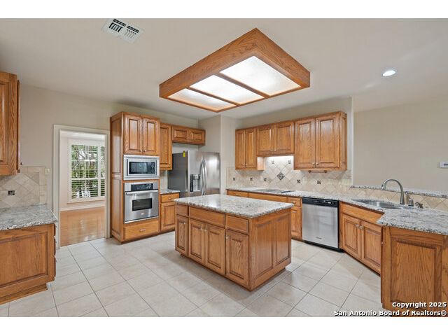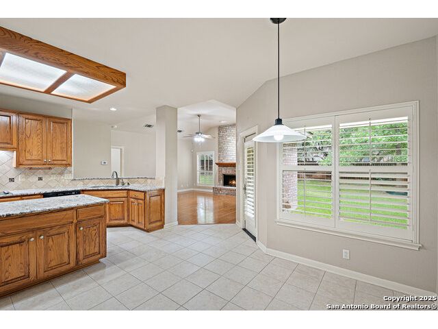 17314 Fountain Bluff | Burdick Custom Home in The Fountains at Deerfield Welcome to 17314 Fountain Bluff, a custom home built by the highly regarded Burdick Custom Homes-one of San Antonio's most trusted luxury builders. Located in the gated community of The Fountains at Deerfield, this neighborhood offers a serene lifestyle with each street ending in a cul-de-sac accented by a unique fountain. Residents enjoy private wooded trails, a sports court, playscape, and unbeatable convenience to Loop 1604, shopping, gyms, and top restaurants. This home presents a unique opportunity: it's comfortable and well-maintained as-is, but also offers excellent potential for a thoughtful remodel or customization over time. The 2025 Bexar County appraised value is $695,960, with a tax-assessed value of $665,500-an exceptional value in a community where many homes are valued in the $800s and $900s. Interior features include beautiful wood and tile flooring, granite countertops, stainless steel appliances, and plantation shutters. The main level offers a dedicated office and spacious primary suite, while upstairs includes three additional bedrooms and two full baths. Outside, enjoy an extended driveway for extra parking, a covered patio, and an oversized, level backyard shaded by majestic mature trees. Don't miss this chance to secure a quality-built home in one of North Central San Antonio's most desirable neighborhoods-with both livability and long-term upside.
