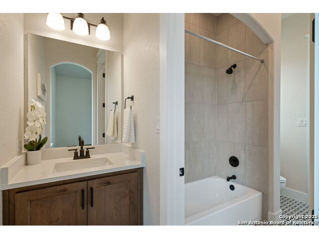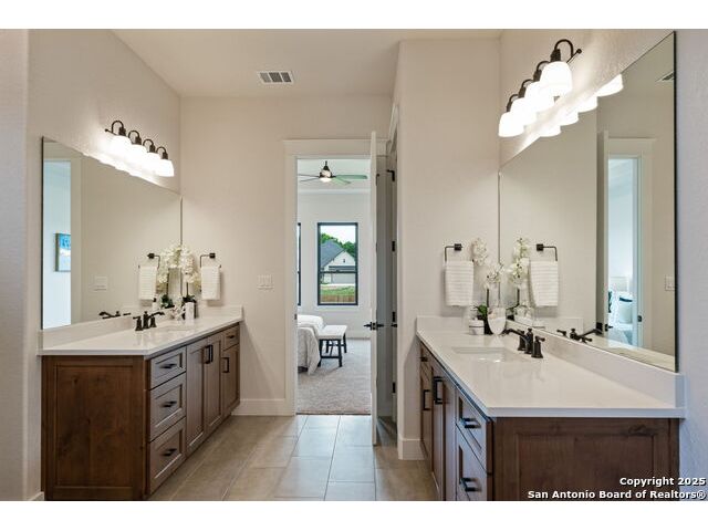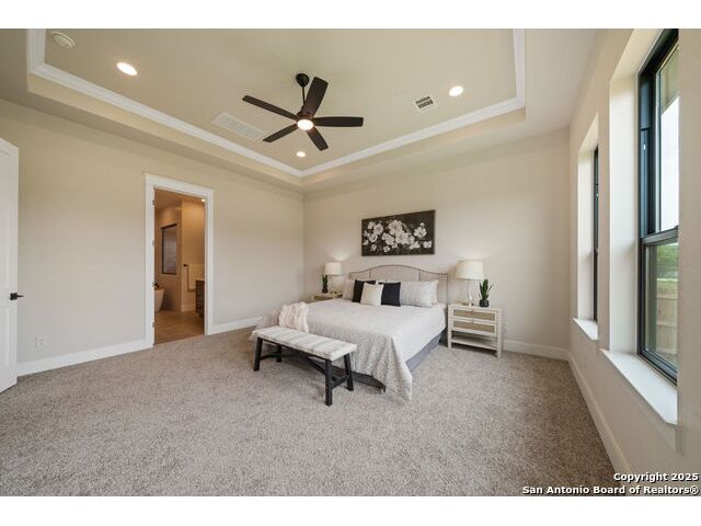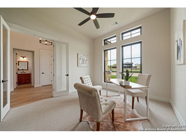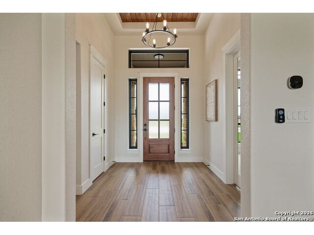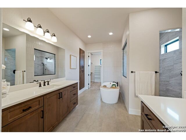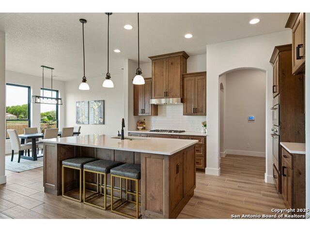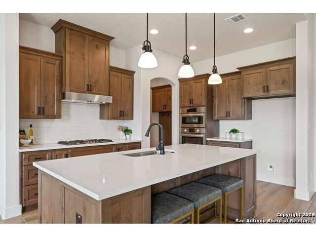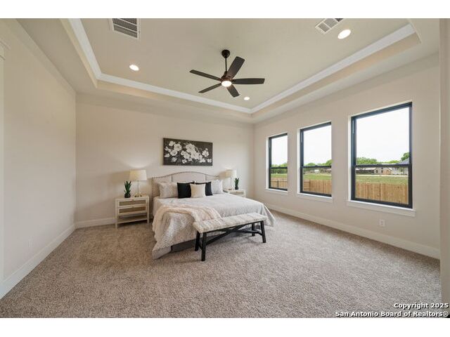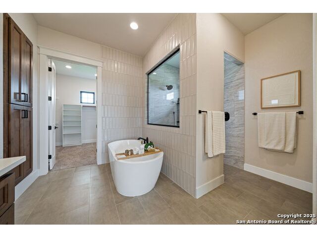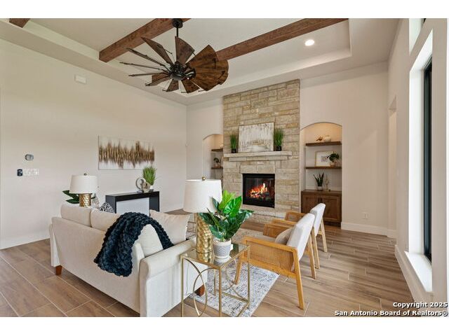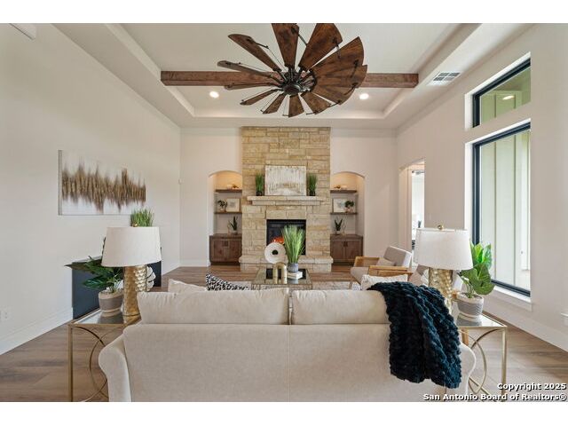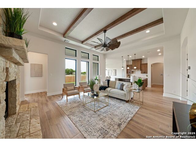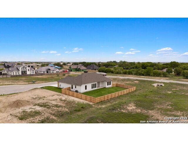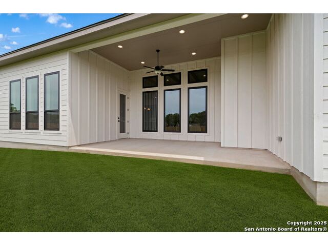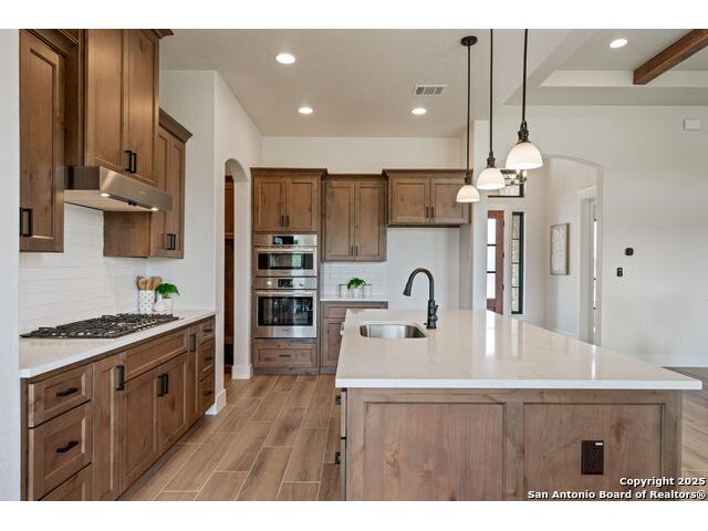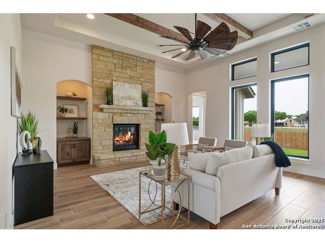 $10,000 Flex Cash Incentive! Seller is offering $10,000 towards buyers closing costs or interest rate buy down! Welcome to luxury living at its finest, nestled within the serene and prestigious Country Village Estates in charming Castroville, TX. This newly constructed masterpiece by renowned builder Etter Custom Homes sets a new standard of elegance and craftsmanship. The single-story custom residence boasts 2,535 sq ft of meticulously designed living space, including 3 spacious bedrooms and 2.5 luxurious baths. As you enter, you're greeted by stunning 8-foot shaker panel solid core doors, high ceilings accentuated by custom wood beams, and refined judges panel and shiplap wall treatments. The thoughtfully chosen designer Sherwin Williams paint and sophisticated quartz countertops add a touch of contemporary elegance throughout. At the heart of the home, discover a chef's kitchen equipped with upgraded stainless steel Bosch appliances, beautifully crafted cabinetry with dovetail drawers, hidden hinges, soft-close doors, pull-out racks, and custom pantry cabinets designed for both storage and style. The kitchen seamlessly connects to a spacious dining and expansive living room adorned with a striking full-height stone fireplace, ideal for entertaining or relaxed evenings at home. The private primary suite serves as a tranquil retreat, featuring an exquisite master bath with a freestanding oval tub, separate vanities, and upgraded fixtures. The home's innovative design continues to impress with a dedicated flex room that can be used as either a fourth bedroom or office and meticulously planned utility spaces. Built to exceed industry standards, this home showcases exceptional energy efficiency, including closed-cell spray foam insulation, Energy Star-certified windows, a fresh air ventilation system, and an efficient mechanical system for maximum comfort and savings. Safety and convenience are paramount with the hard-wired security system, emergency shut-off valves, and structural wiring throughout. Step outdoors to a beautifully landscaped yard featuring native plants, a lush Bermuda lawn, full irrigation, and elegant rock exterior details crafted from random laid lueders stone. Enjoy tranquility and privacy from the spacious covered patio or welcoming front porch. Don't miss your opportunity to experience the epitome of luxurious country living, located conveniently close to amenities, yet nestled in a peaceful and scenic community. Schedule your viewing today and fall in love with everything this remarkable home offers.